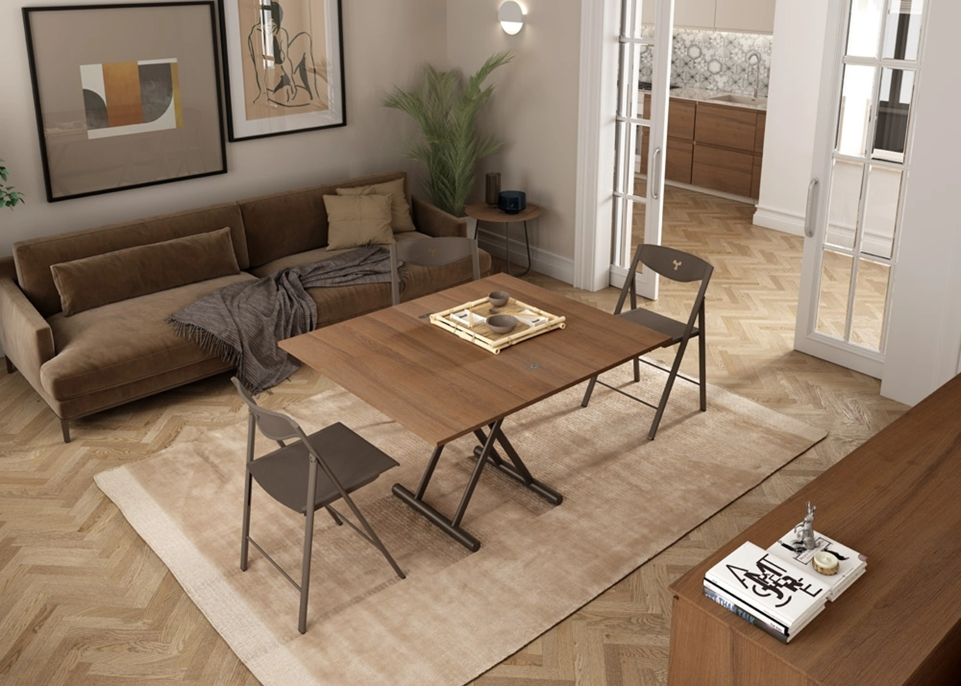 Complementi e tavolini personalizzano l'arredo di casa, riempiendo lo spazio in maniera utile e rendendolo assai funzionale e di grande valore estetico. Le composizioni di charme del marchio Easyline arredano l'habitat con i loro colori e stile, ricreando particolari atmosfere arredative. Tavolino trasformabile Fast di Easyline in laminato: conferirà personalità e charme a un interno ammobiliato con mobili e oggetti accessori dai richiami moderni. In negozio potrai toccare con mano l'eccellenza dei modelli di tavolini moderni in laminato del marchio, proprio come questa soluzione in foto.