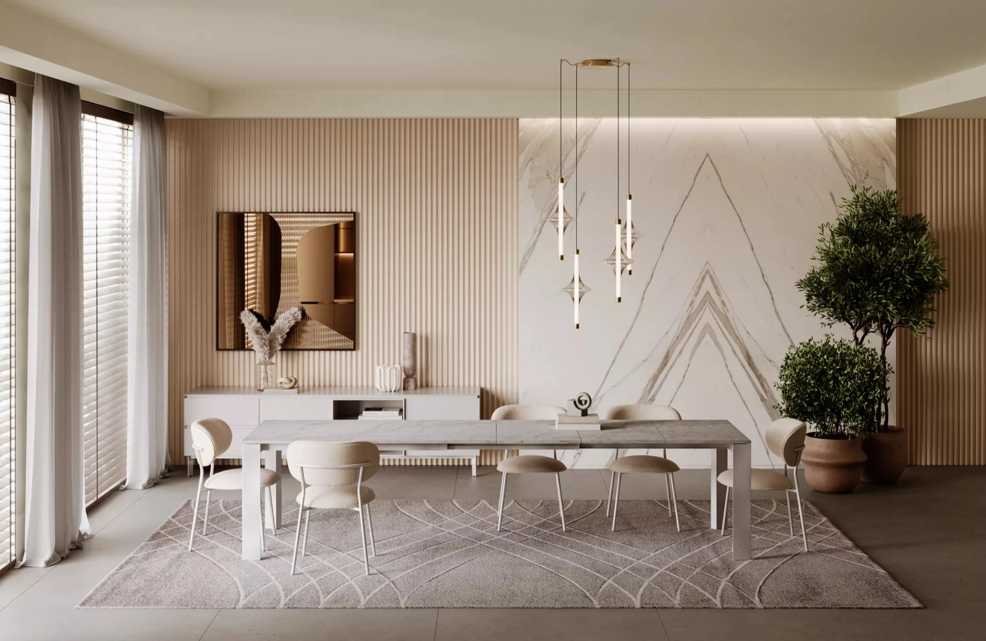 Le composizioni arredative di grande fascino del brand Bontempi personalizzano gli interni con i loro colori e gusto, ricreando particolari atmosfere arredative. Nel nostro punto vendita potrai vedere dal vivo l'eccellenza dei modelli di tappeti moderni in tessuto dell'azienda, proprio come questa soluzione in foto. Molto versatili e multifunzionali, i Complementi moderni in tessuto svolgono funzioni diverse: ultimano le doti pratiche e l'estetica del locale. Complementi e tappeti personalizzano l'arredo di casa, occupando lo spazio in modo utile e rendendolo accogliente e bello a vedersi.