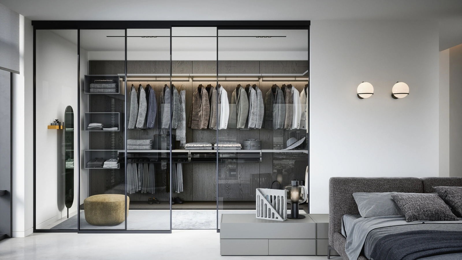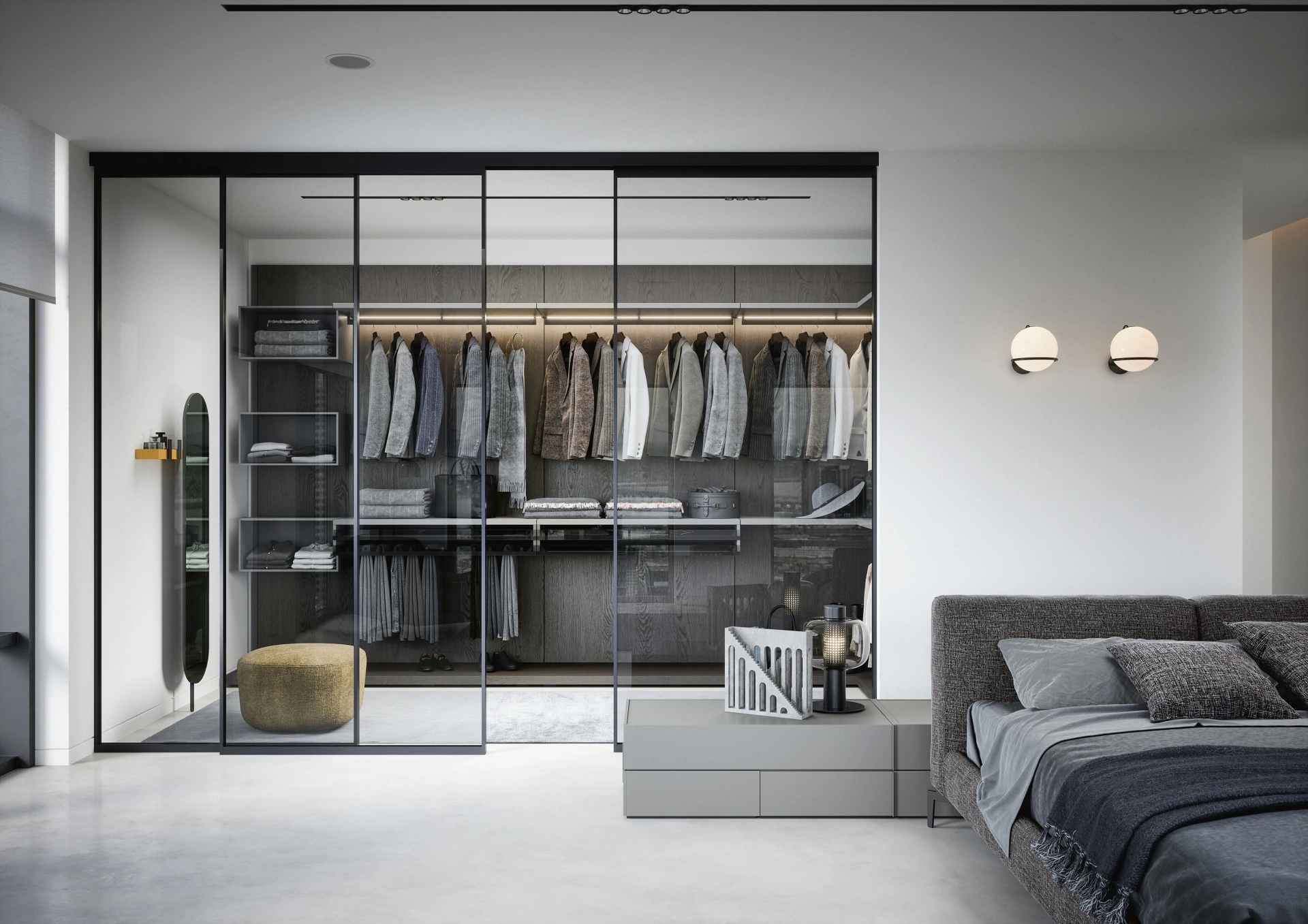 Tra i molteplici modelli moderni cabine armadio con ante scorrevoli, quello presente in foto ultima la camera sia dal lato della funzionalità che dal punto di vista estetico. La camera da letto è una stanza dedicata al relax, che quindi deve risultare ammobiliata al meglio e completa da mobili in grado di creare un'ambientazione sempre rasserenante. I modelli che distribuiamo sono soluzioni di arredo tali che facilitino il tuo riposo creando un'ambientazione rasserenante e contengano oggetti e capi di abbigliamento. Gli Armadi con ante scorrevoli da disporre in casa sono progettati con attenzione e con dedizione, poiché devono organizzare gli spazi impreziosendoli. Praticità e estetica vanno di pari passo e il brand li garantisce tutti e due: questa proposta di Cabina Armadio Break di Novamobili in laccato opaco ti aspetta. Con l’ausilio di un buon modello di armadio, potrai completare con eleganza la tua camera da letto, valorizzando forma e metratura del locale.