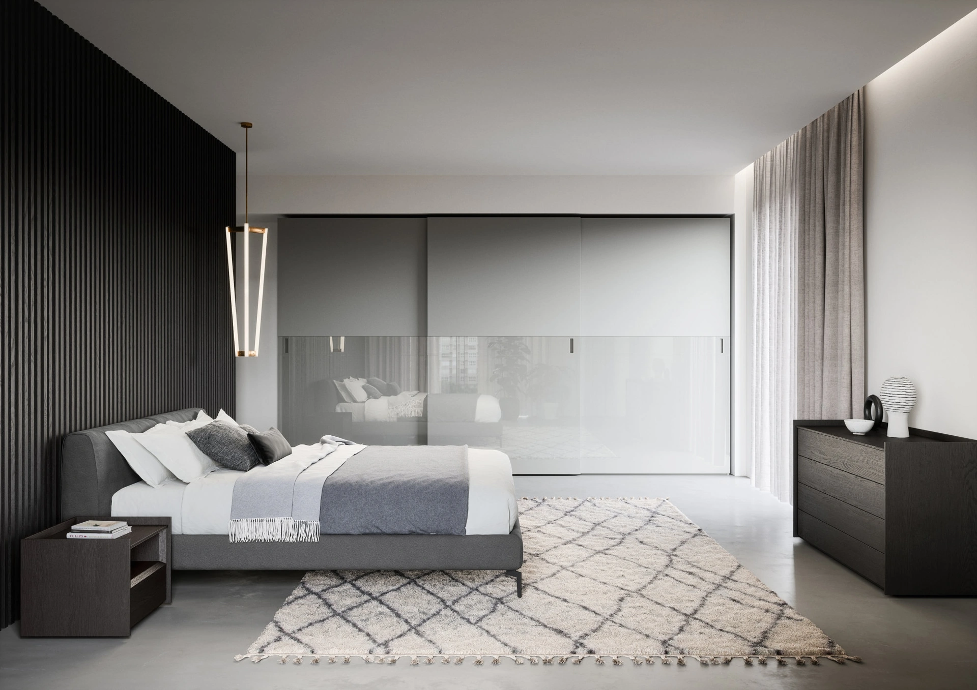 La zona del riposo è una stanza dedicata al relax, che dunque deve risultare ben arredata e completa da arredi in grado di creare un'atmosfera sempre distensiva. Con l’ausilio di un buon modello di armadio, potrai completare con eleganza la tua zona del riposo, sfruttando bene forma e dimensioni dell'ambiente. Gli Armadi con ante scorrevoli da disporre in casa sono studiati attentamente e con passione, visto che devono organizzare gli spazi arricchendone l'estetica. Tra i vari modelli moderni a muro con ante scorrevoli, quello visibile in foto ultima la zona notte sia sotto l'aspetto della praticità che dal punto di vista dell'estetica. Funzionalità e valore estetico vanno di pari passo e il brand li garantisce entrambi: questa proposta di Armadio Class scorrevole di Novamobili in laccato opaco ti sta aspettando. I modelli che mettiamo in vendita sono articoli di arredo tali che facilitino il tuo relax creando un'atmosfera distensiva e contengano oggetti e capi di abbigliamento.