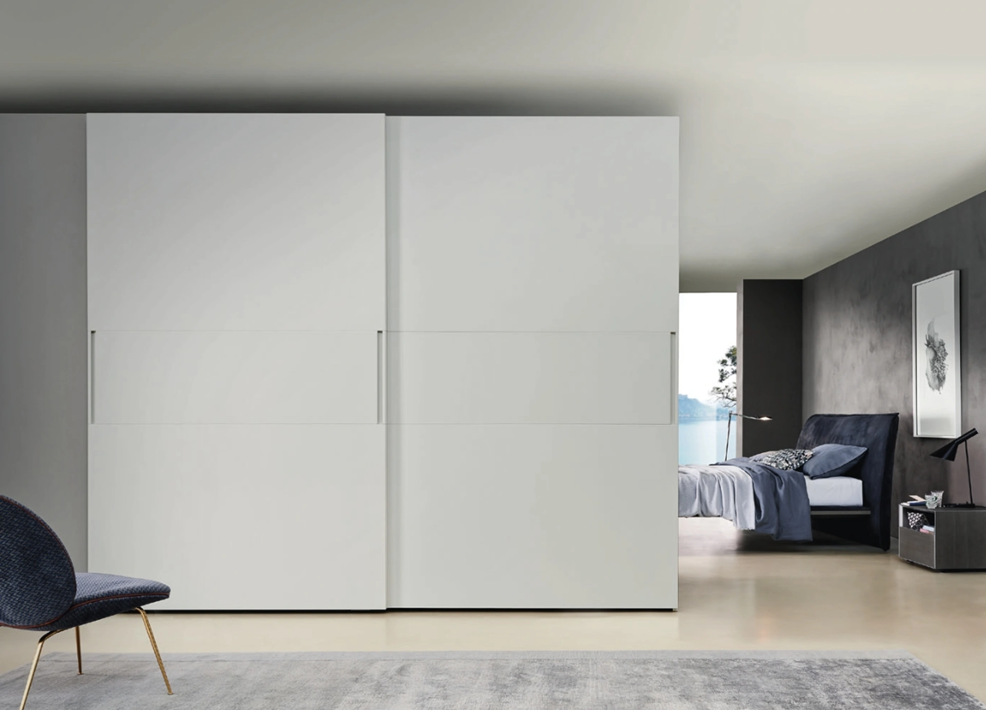 Modello Hill con ante scorrevoli in laccato opaco ideale per una zona notte dai richiami moderni: scopri le soluzioni a muro