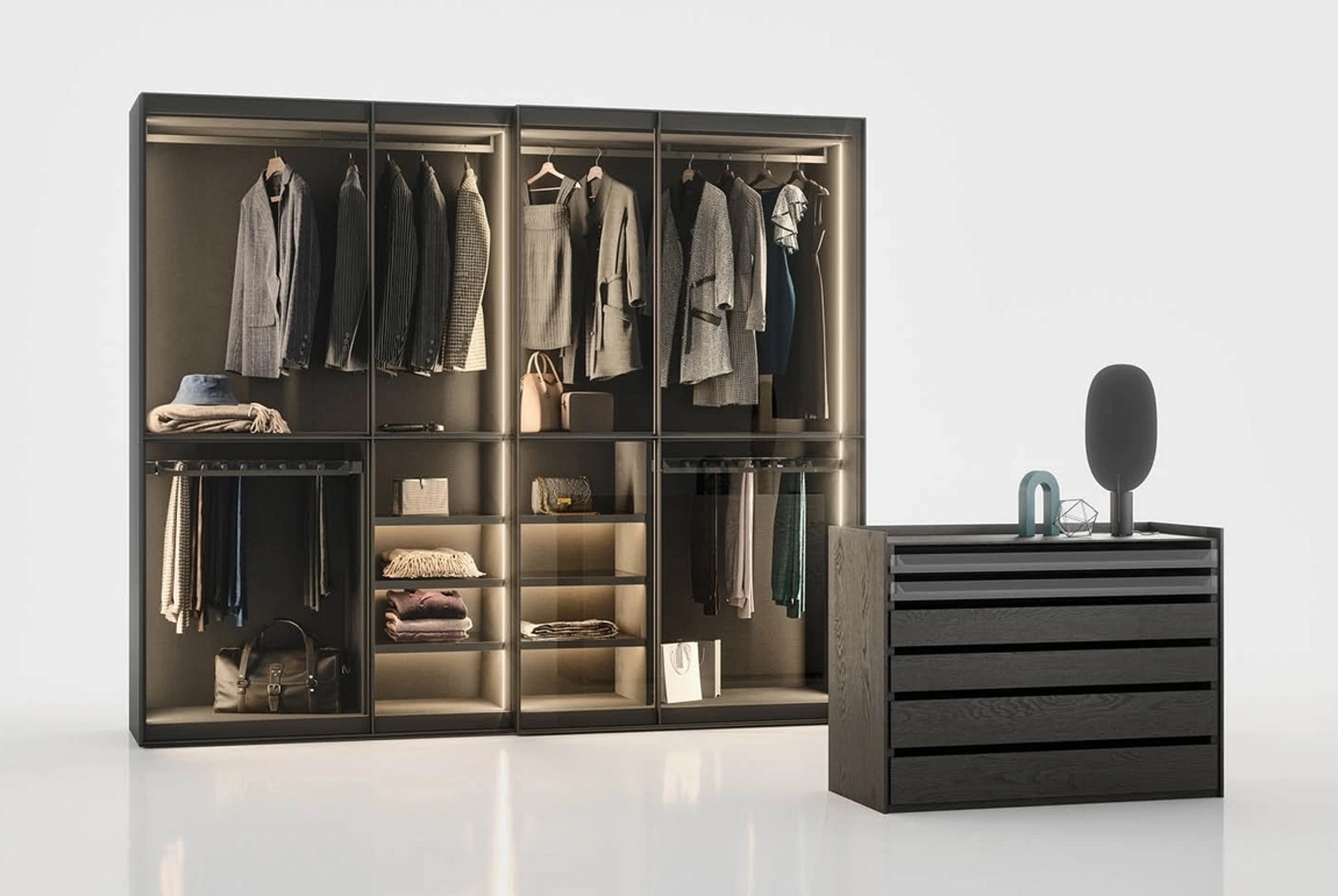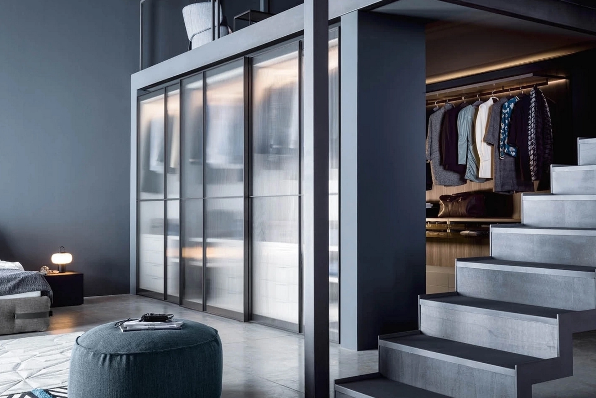 Modello Layer Vetro scorrevole con ante scorrevoli in vetro pensato per una zona notte dai richiami design: scopri le soluzioni a muro