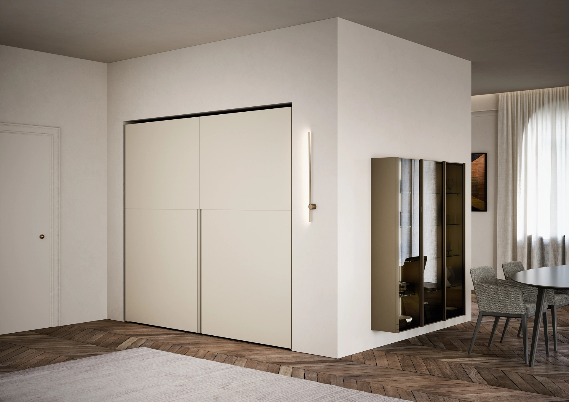 Gli Armadi con ante scorrevoli da disporre in casa sono progettati con attenzione e con passione, poiché devono progettare gli spazi arricchendone l'estetica. La zona notte è una stanza dedicata al relax, che perciò deve risultare arredata al meglio e completa da arredi capaci di creare un'ambientazione sempre distensiva. Tra i vari modelli moderni a muro con ante scorrevoli, quello visibile in foto ultima la camera sia dal lato della funzionalità che dal punto di vista estetico. I modelli che vendiamo sono soluzioni di arredo tali che favoriscano il tuo riposo creando un'ambientazione distensiva e contengano oggetti e capi di abbigliamento. Con l’ausilio di un buon modello di armadio, potrai completare con stile la tua zona notte, usufruendo al meglio di forma e metratura del locale. Funzionalità e design vanno di pari passo e il brand li garantisce tutti e due: questa proposta di Armadio Picture complanare di Novamobili in laccato opaco ti sta aspettando.