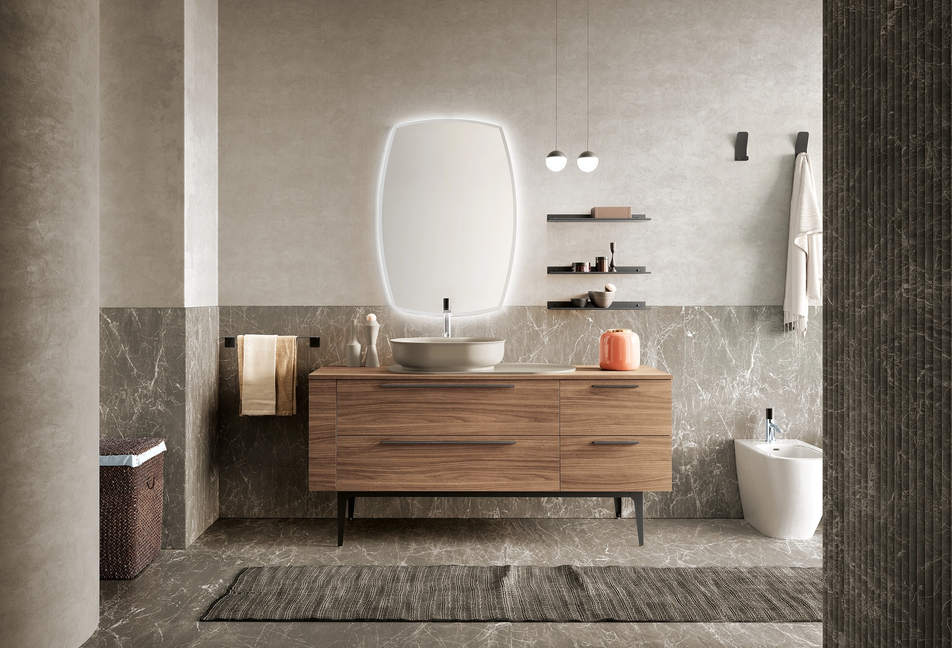 Arredo Bagno moderno Archeda: scegli questo modello in legno tra differenti proposte di mobili bagno da appoggio