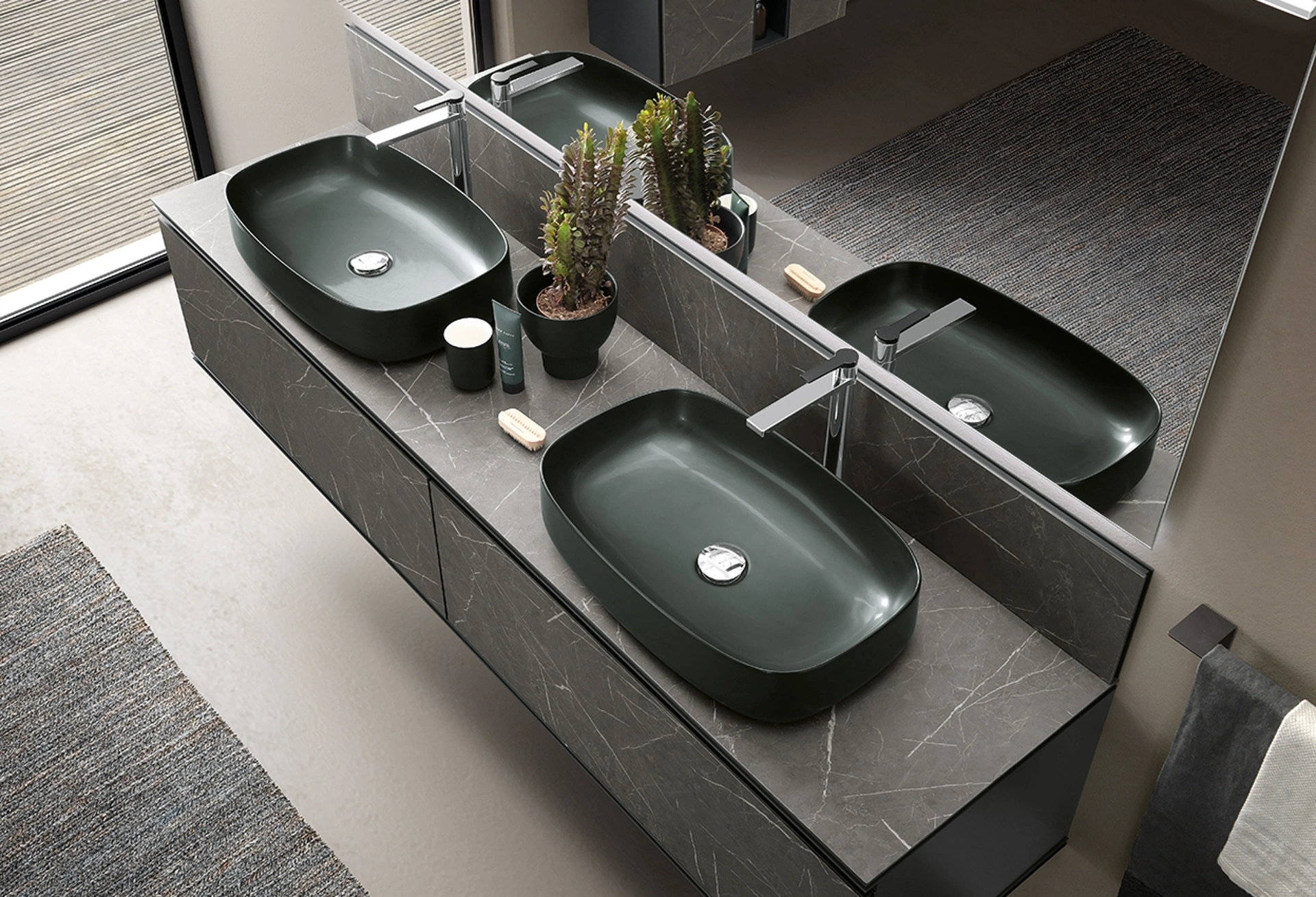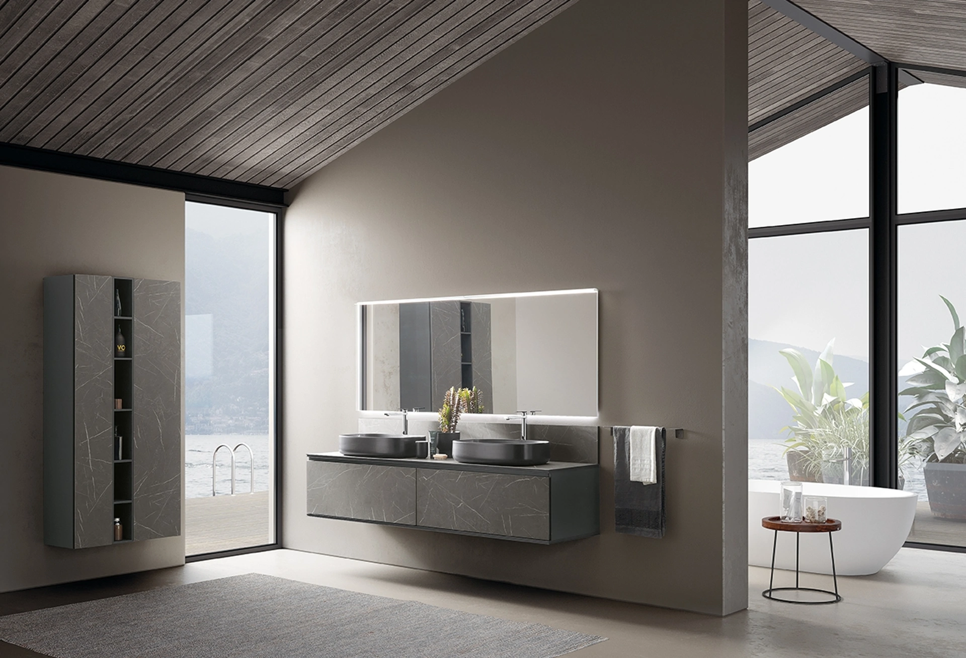 Arredo Bagno Archeda: scopri un ricco catalogo di mobili bagno sospesi in HPL, tra cui il modello Modulo 02
