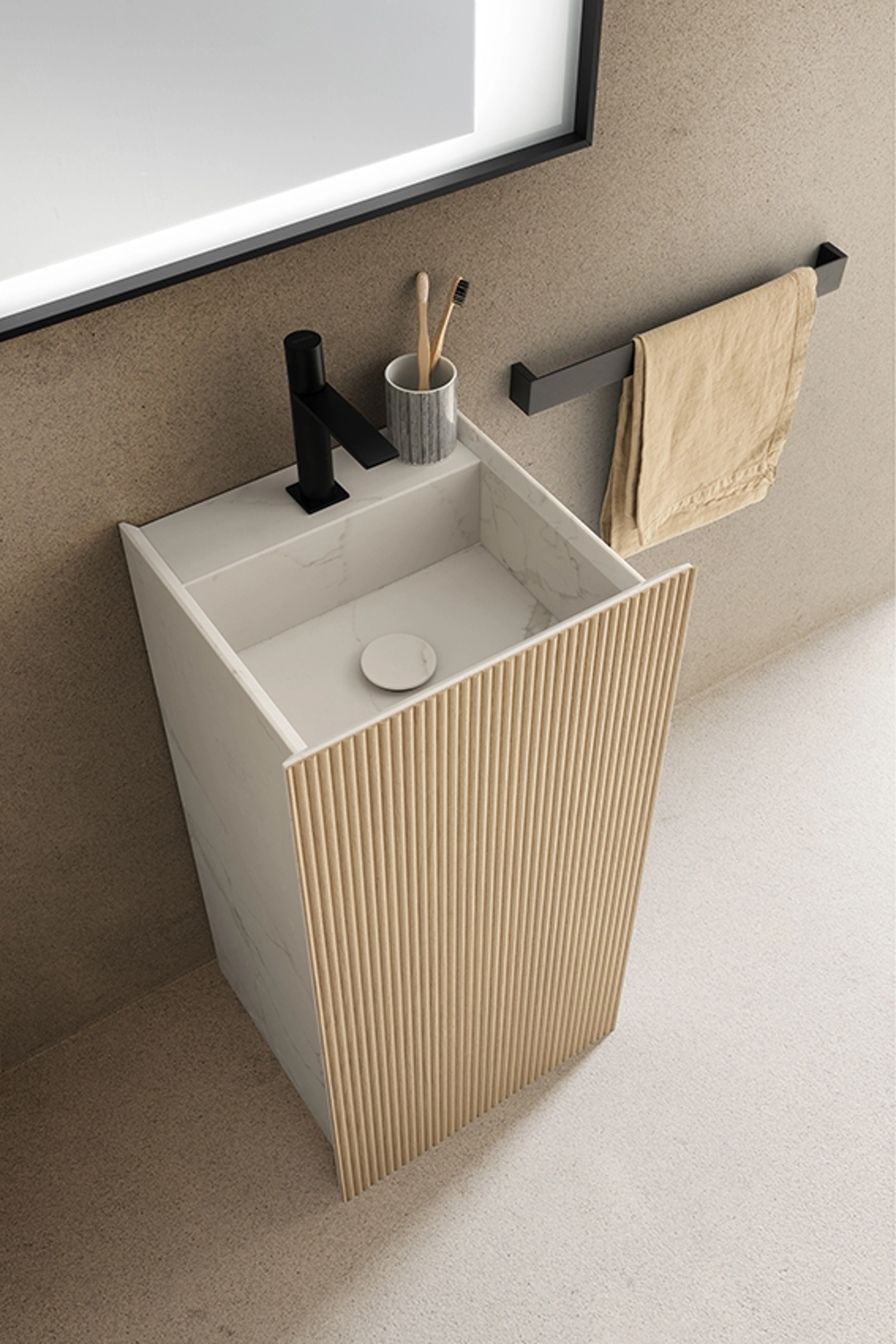 Arredo Bagno design Archeda: scegli questo modello in legno tra differenti proposte di mobili bagno da appoggio