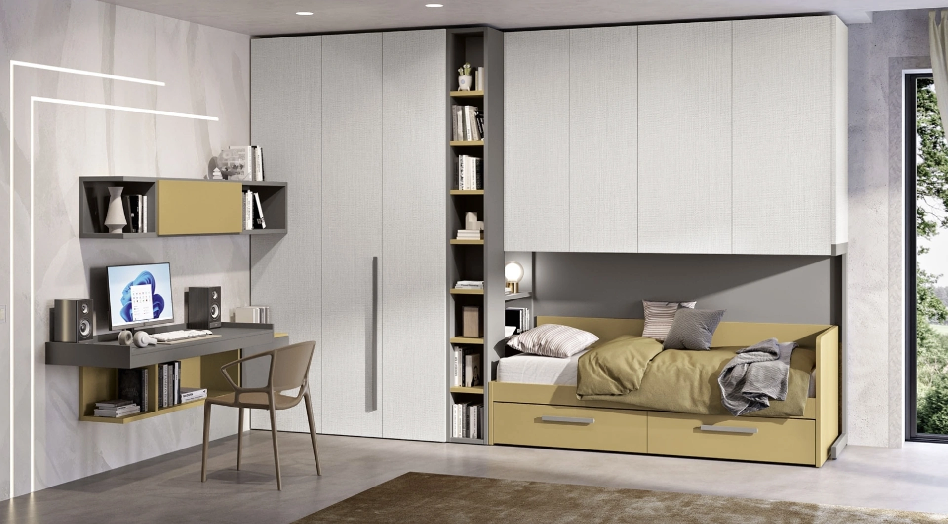 Con la Cameretta 119 di Ferrimobili renderai la stanza dei tuoi figli un interno davvero vivibile e sicuro, che li seguirà nella crescita. Questa proposta con finitura in melaminico, tra quelle a ponte per ragazzi di Ferrimobili, soddisfa le richieste degli adulti e i gusti dei giovani. Il conosciuto marchio realizza svariate soluzioni moderne, in tal modo la cameretta è un locale dove i piccoli saranno contenti di crescere e sognare. Per arredare alla perfezione le Camerette, Ferrimobili rende disponibili soluzioni progettuali e versatili: sono molteplici le attività che i tuoi bambini svolgono lì.