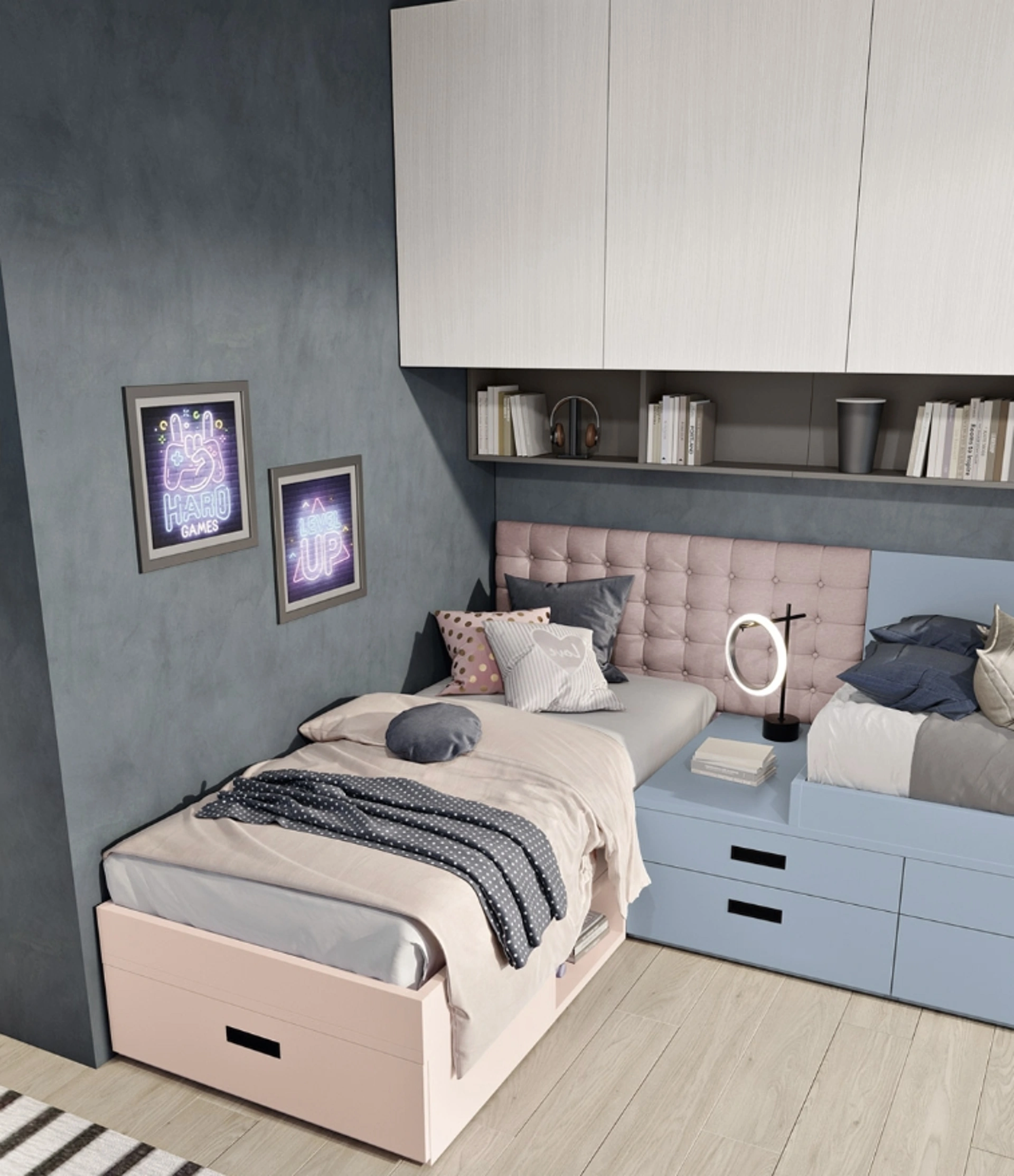 In negozio ti seguiamo dalla scelta dei mobili per la camera alla progettazione del luogo dove i tuoi bimbi cresceranno, giocando e sognando. Proponiamo in negozio svariate Camerette a ponte moderne per ragazzi del marchio, ideali per seguirli durante la loro crescita. I nostri bambini trascorrono gran parte delle loro giornate nelle loro camere da letto: rendile adatte per studiare, divertirsi e dormire quotidianamente. Le Camerette dei nostri figli sono l'ambiente dove diventeranno grandi giocando e sognando, dunque è essenziale che lo spazio sia agevole.
