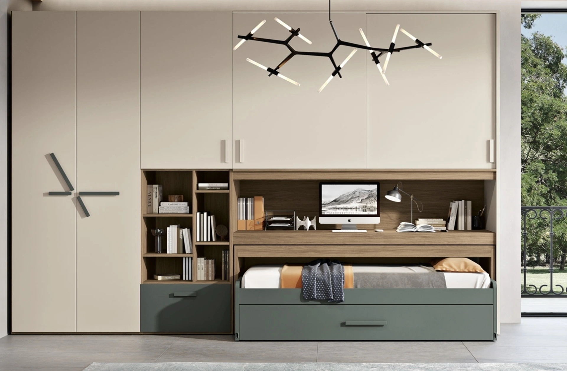 Visitarci vuol dire vedere dal vivo tutte le più belle soluzioni per ragazzi salvaspazio in melaminico che proponiamo nel nostro punto vendita. Con la Cameretta 141 di Ferrimobili renderai la stanza dei tuoi figli un ambiente davvero funzionale e sicuro, che li accompagnerà mentre crescono. Il conosciuto brand propone molteplici soluzioni moderne, in tal modo la cameretta risulterà un ambiente dove i bambini possono diventare grandi e sognare. Questa proposta con finitura in melaminico, tra quelle salvaspazio per ragazzi di Ferrimobili, soddisfa le richieste degli adulti e i gusti dei giovani.