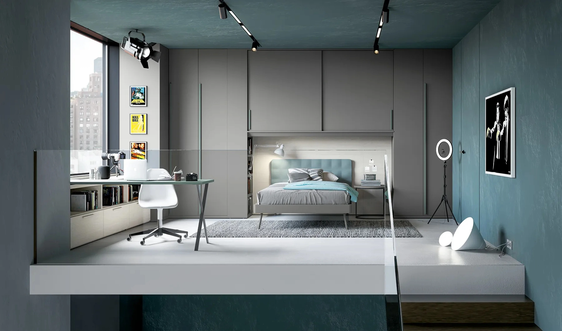 Modello Layout 04B con finitura in laccato opaco pensata per ragazzi: scopri tutte le soluzioni a ponte