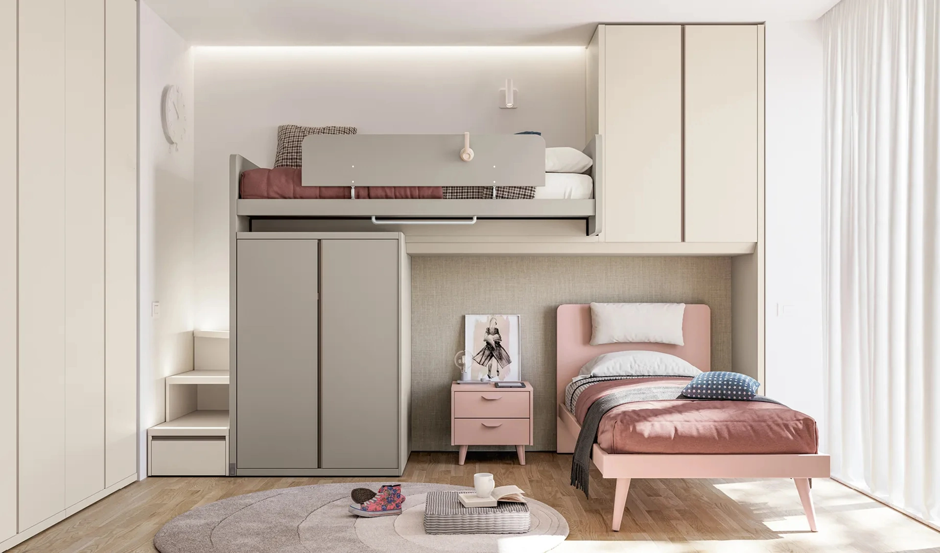 Scopri il modello Layout 15B e tutte le altre Camerette a soppalco moderne per bambine di Doimo Cityline