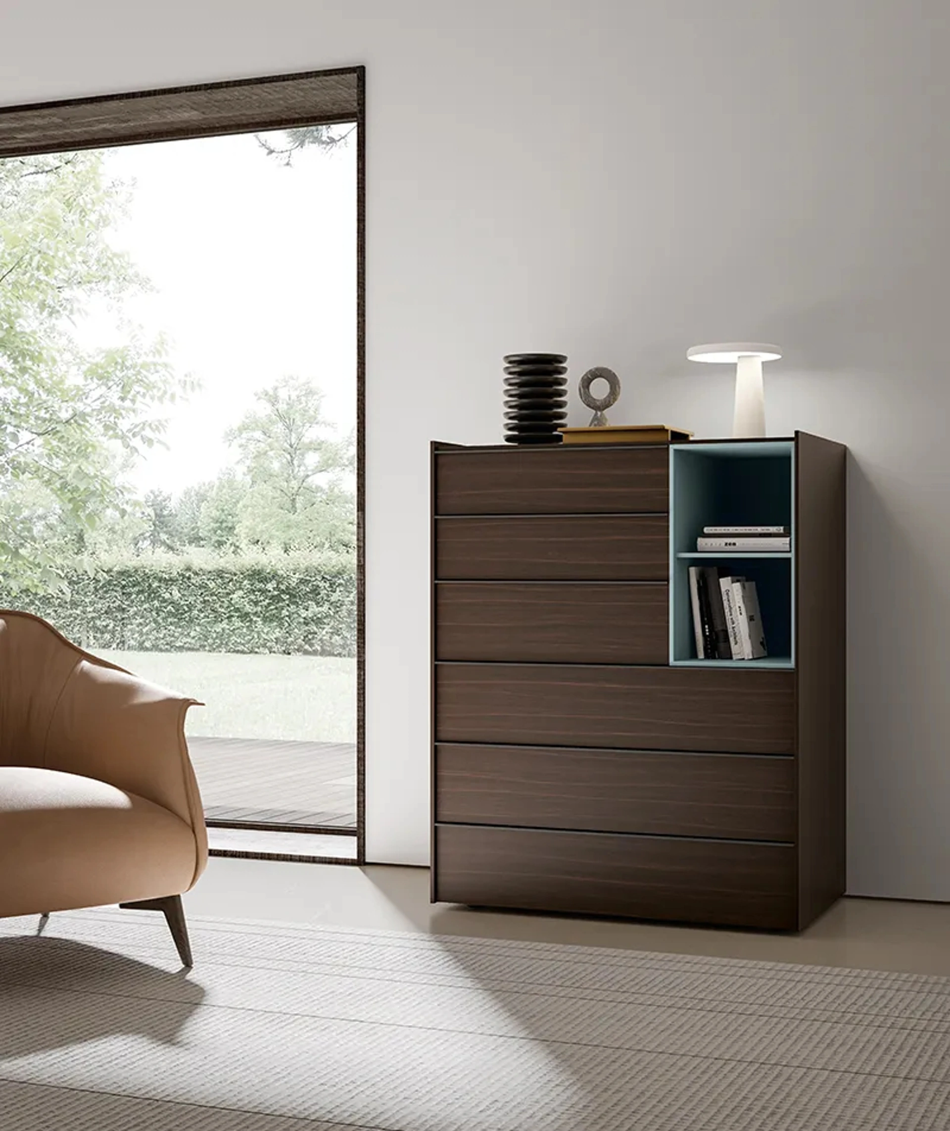 Valorizza i tuoi locali scegliendo composizioni di arredi abbinati oppure crea eleganti abbinamenti di stile e tonalità per merito del catalogo di mobili e oggetti accessori per la camera da letto che proponiamo, come il modello in melaminico visibile in foto, anche realizzabili su misura. Cassettiera Stream di Adok: contattaci e ottieni informazioni sulle nostre soluzioni arredative e arreda la camera come l'hai sempre immaginata. Con i nostri gruppi notte moderni della firma Adok, leader dell’Arredamento Casa per la camera da letto, potrai ricreare la camera da letto che hai sempre desiderato.