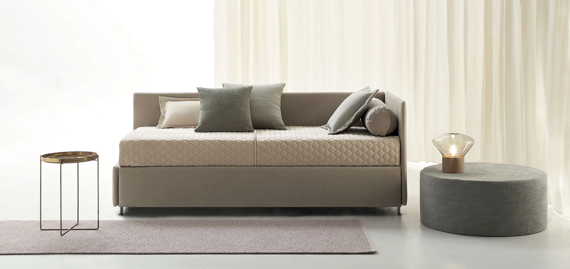 Il Daybed singolo con letto estraibole Golf 417 di Oggioni in foto è ideale per ultimare ottimamente la cameretta dei tuoi figli, abbinandosi in modo ottimale con armadi e comò, accessori e quant'altro. Contattaci e scopri di più sulla nostra linea di Letti singoli in tessuto: arreda la stanza dei più piccoli come l'hai sempre immaginata. Se vuoi mobili ed elementi accessori moderni, il letto singolo in foto fa per te: #appartiene alla@# nostra linea di letti singoli con letto estraibile. Questo è uno tra i prodotti più esclusivi dell'azienda Oggioni, sinonimo di resistenza negli anni, qualità delle finiture e un design unico.