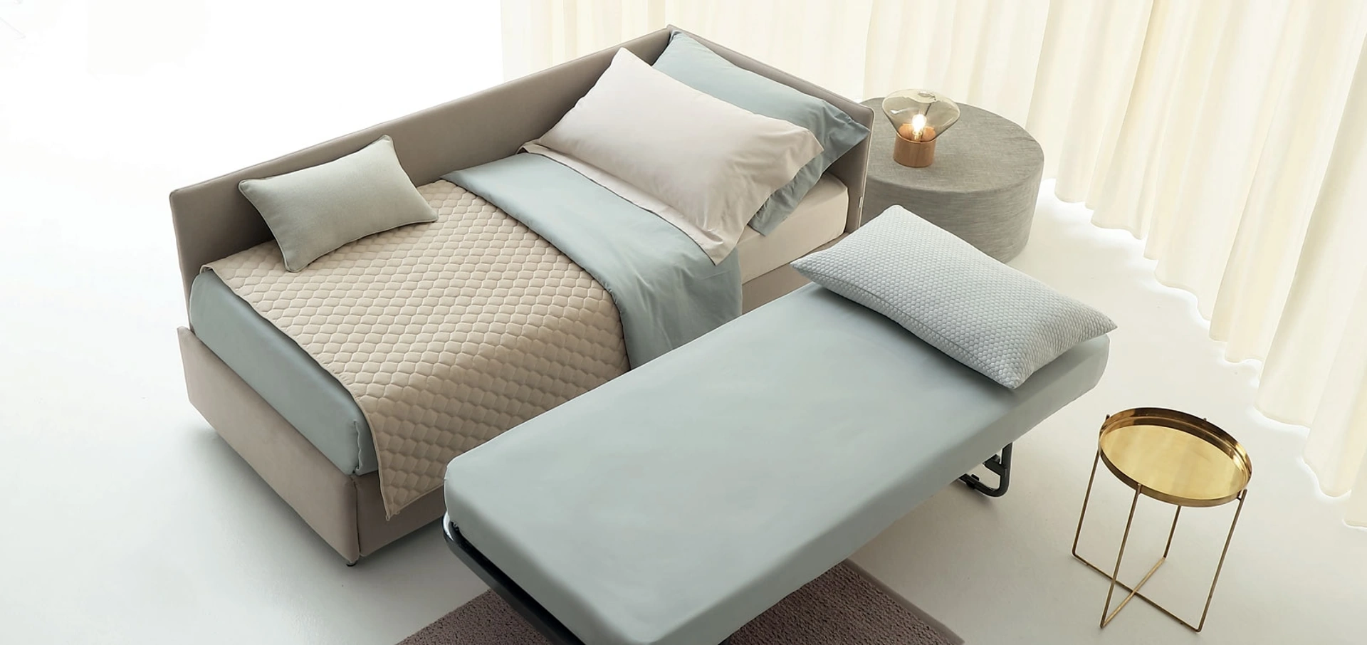 Letti singoli con letto estraibile di Oggioni: scopri il modello Golf 417 in tessuto