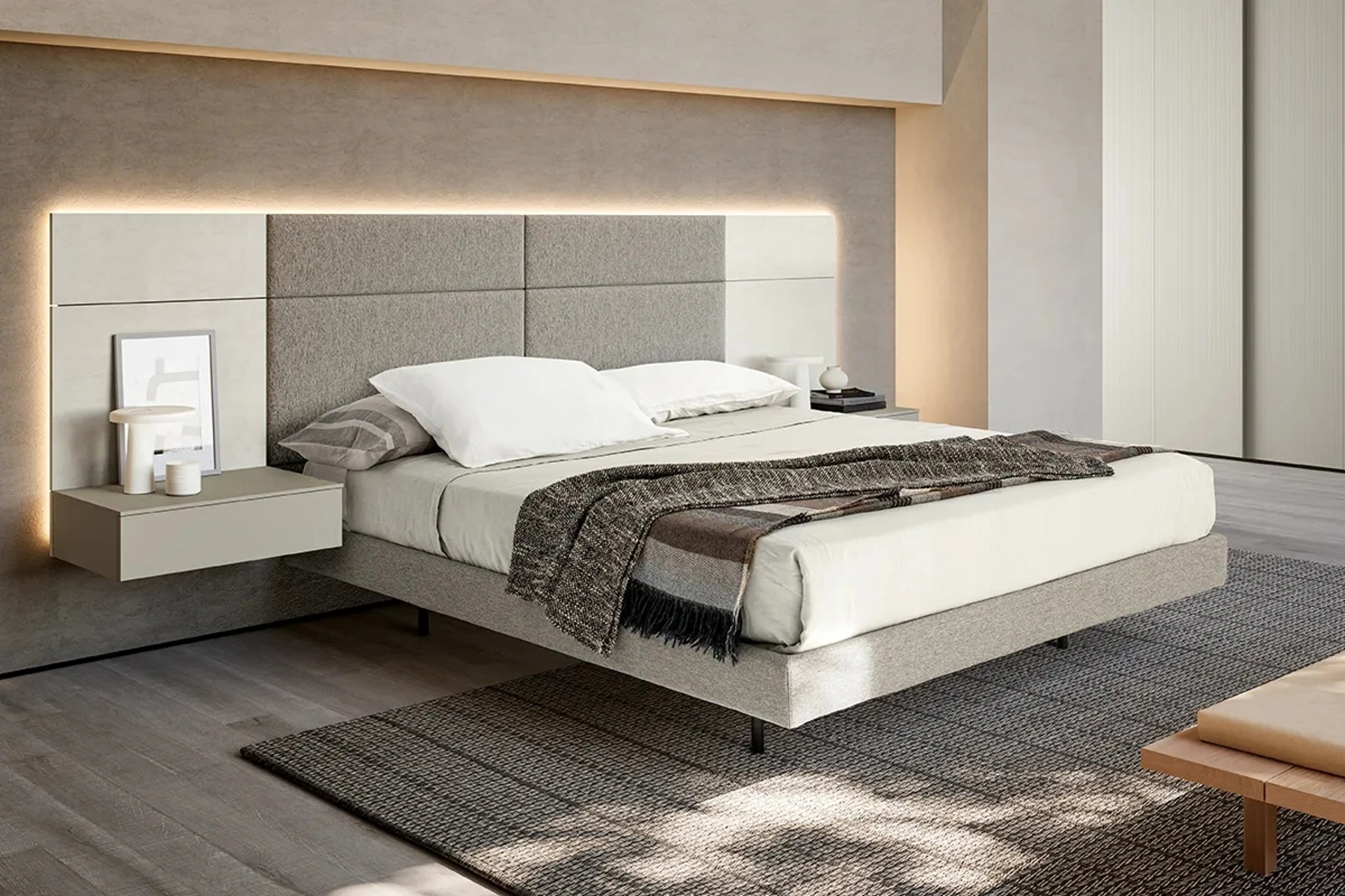 Scegli tonalità e finiture e realizza il tuo progetto d’arredo nella camera, progettandola proprio come l'avevi sognata. Il Letto Modula in tessuto di Adok ricrea uno spazio intimo e confortevole in ogni camera, assicurandoti il sonno più profondo e uno stile unico. Durante l'acquisto di un buon modello di letto, valuta con cura le sue misure, i materiali, la forma e il suo stile rispetto al resto degli arredi. I Letti matrimoniali imbottiti della marca, specialista nella produzione di Arredamento Casa per la zona notte, sono pensati per essere abbinati a mobili ed elementi accessori di ogni genere, come armadi e comodini, abat jour e piantane.