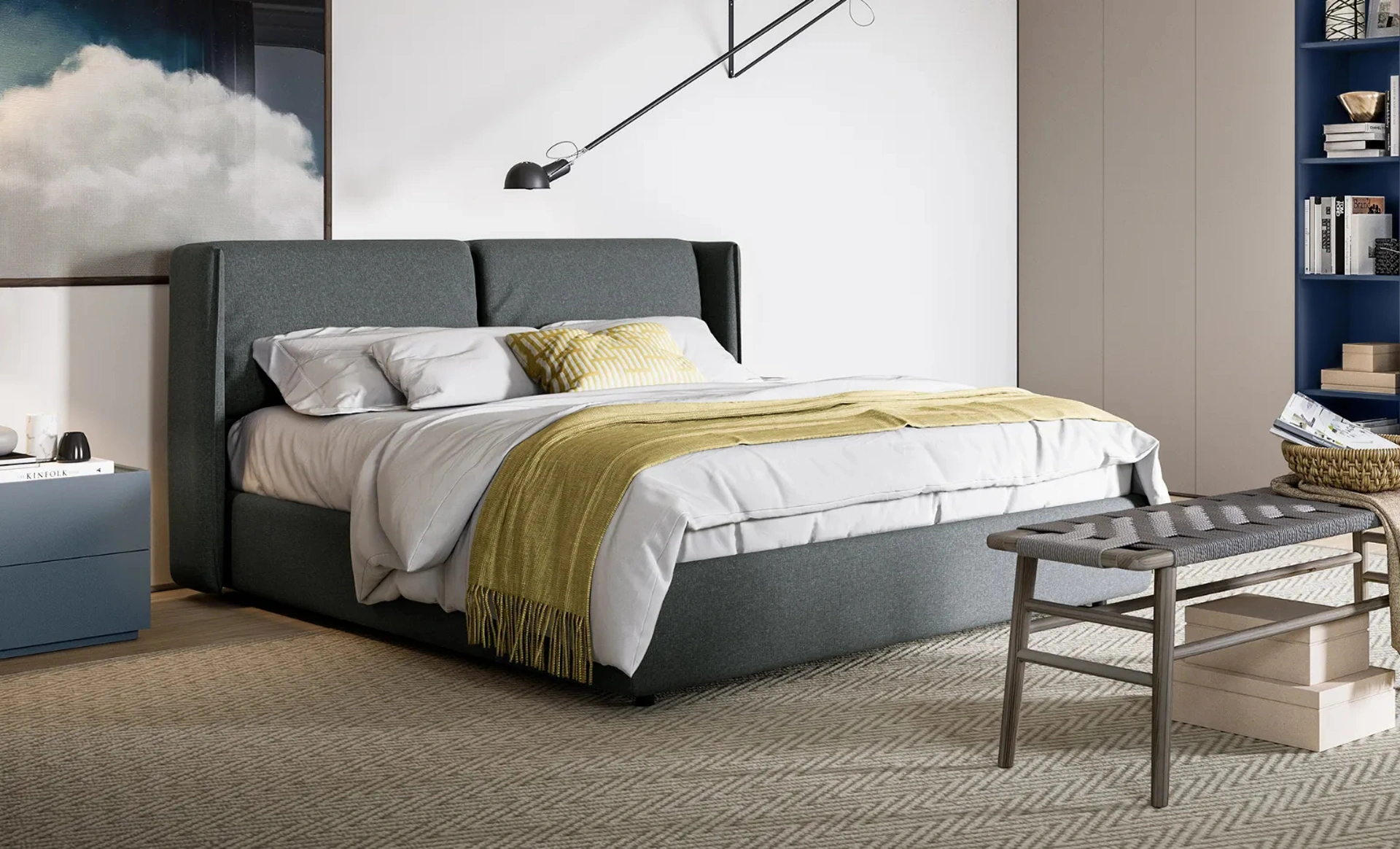 Durante l'acquisto di un buon modello di letto, valuta con attenzione le sue misure, i materiali, la forma e il suo stile rispetto al resto dell'arredo. Se desideri una soluzione in tessuto, il modello mostrato in foto è caratterizzato da materiali pregiati e linee decise, che invitano a trascorrere un riposo tranquillo e ristoratore. I Letti matrimoniali con contenitore del marchio, specialista nella produzione di Arredamento Casa per la zona del riposo, sono progettati per essere abbinati a mobili e complementi di ogni genere, come armadi e comodini, abat jour e piantane. Scegli cromie e texture e realizza il tuo concept d’arredo nella zona notte, progettandola proprio come l'avevi immaginata.