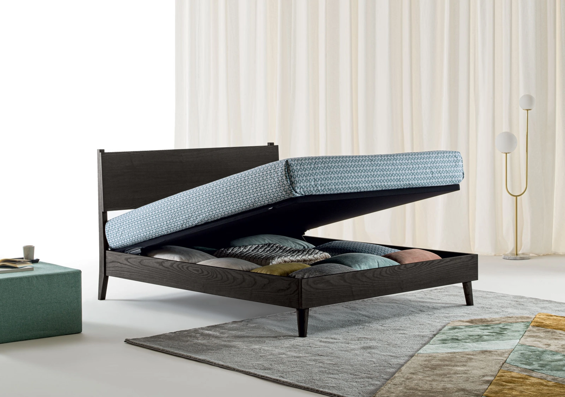 Durante la scelta della giusta tipologia di letto, valuta con cura le sue misure, le finiture, la forma e il suo stile rispetto al resto dell'arredo. Se desideri una soluzione in legno, il modello presente in foto è caratterizzato da materiali durevoli e forme decise, che invitano a trascorrere un riposo completo e rigenerante. Il Letto Orimento di Oggioni ricrea uno spazio accogliente e confortevole in ogni camera da letto, assicurandoti il relax totale e un design unico. Scegli cromie e finiture e realizza il tuo progetto d’arredo nella camera da letto, progettandola proprio come l'avevi sognata. I Letti matrimoniali con contenitore della firma, leader nella realizzazione di Arredamento Casa per la camera da letto, sono progettati per essere abbinati a mobili e oggetti accessori di ogni tipo, come armadi e comodini, abat jour e piantane.