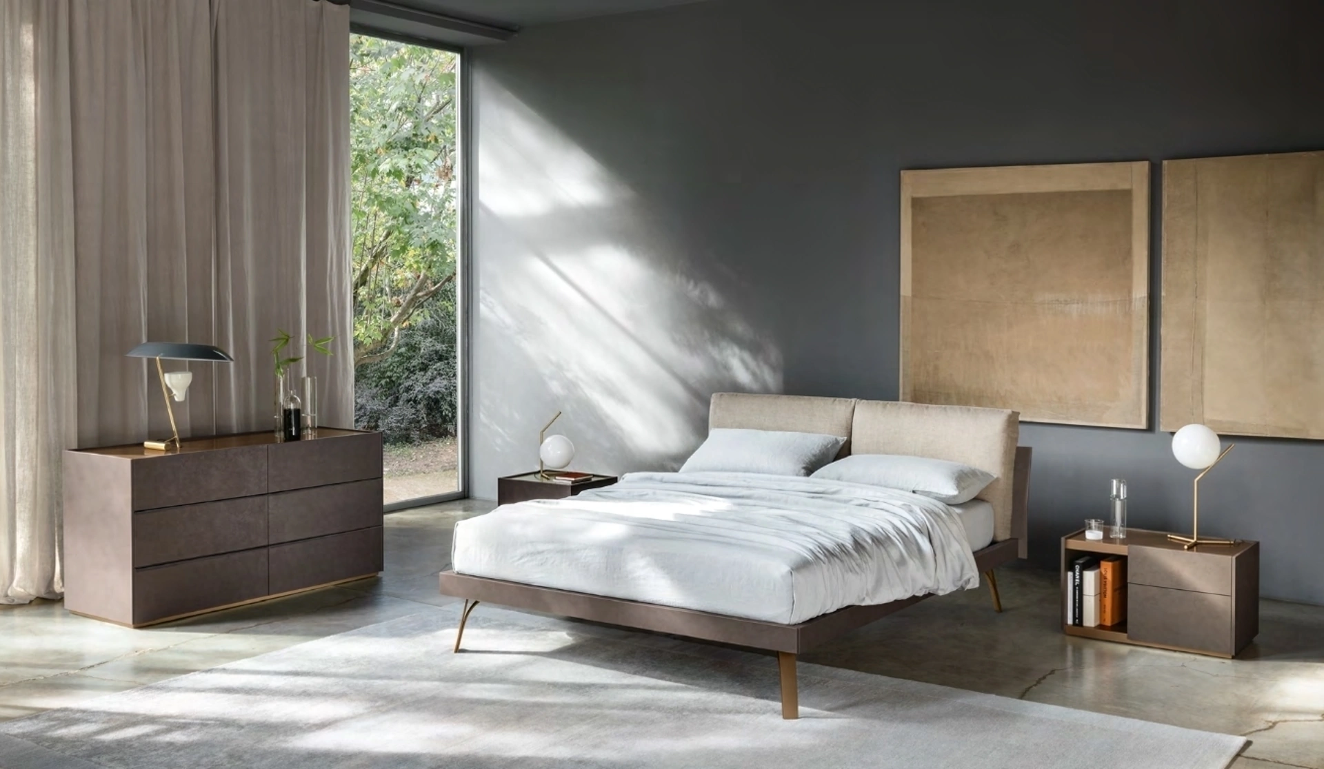 I Letti matrimoniali con testiera di Sangiacomo ti aspettano insieme al modello Abbraccio Grafic