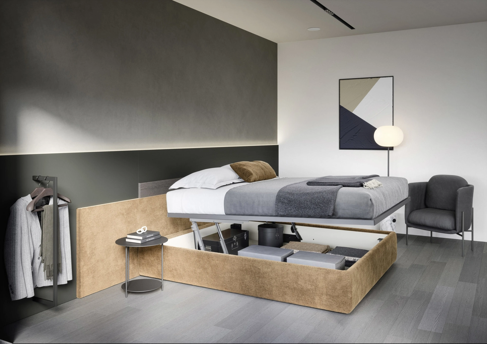 I Letti matrimoniali con contenitore di Novamobili ti aspettano insieme al modello Testiera Time
