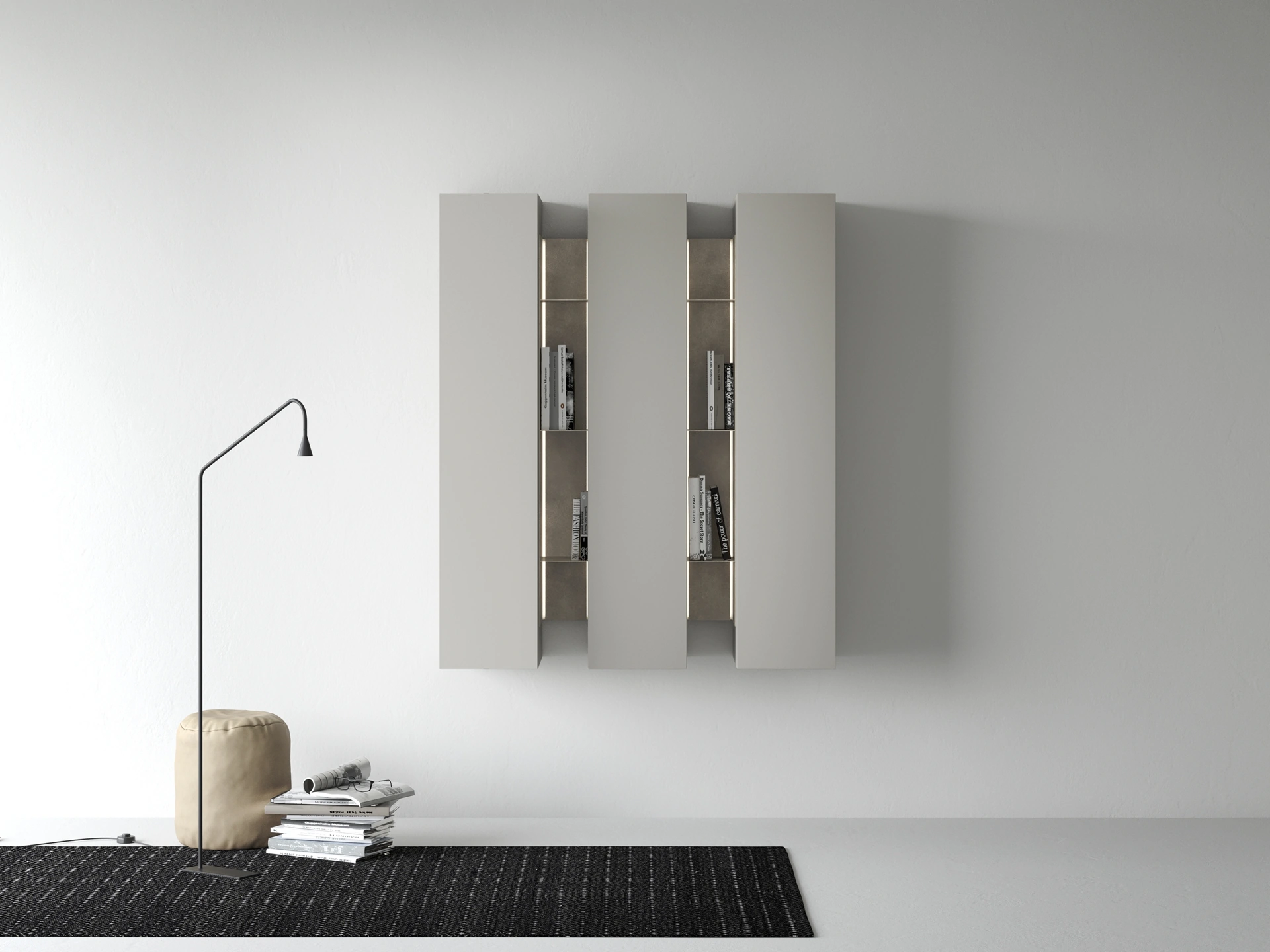 Libreria in laccato opaco di Caccaro, pensata per organizzare ambientazioni moderne e ottenere il meglio dallo spazio disponibile