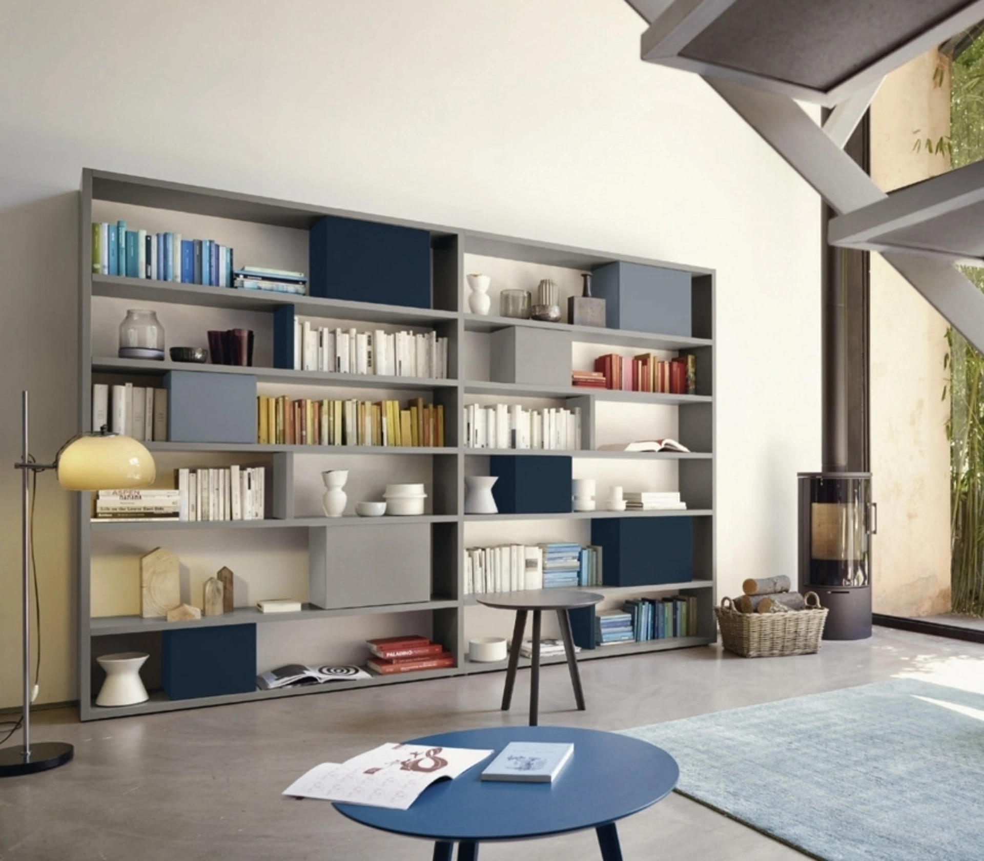 Libreria in laccato opaco di Sangiacomo, pensata per arredare ambientazioni moderne e organizzare al meglio gli interni