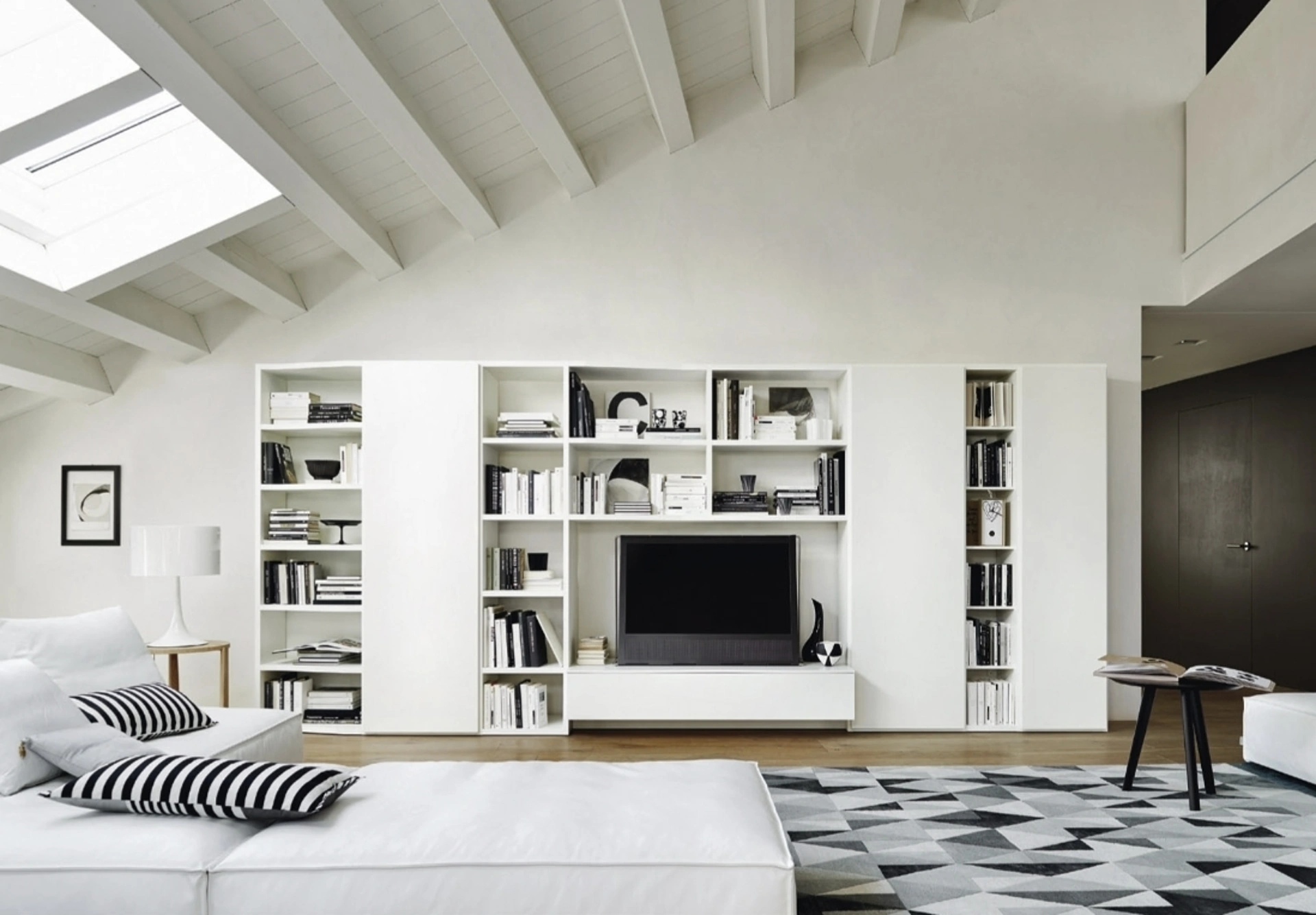 Il soggiorno è, per eccellenza, la zona della casa in cui ci dedica al relax ogni giorno, discorrendo con familiari e amici, riposando da soli nonché guardando la televisione. Le Librerie a muro Sangiacomo sono disponibili in diverse conformazioni: angolari, lineari, sospese e realizzabili su misura per te con vari accessori, mensole e vani. Contattaci per info e preventivi sul modello mostrato in foto: se vuoi ultimare stanze moderne, allora questa libreria dalle linee decise fa per te. Le Librerie moderne sono sempre particolarmente amate per organizzare il living e i muri, unendo al meglio doti di funzionalità e stile. La Libreria Modo Comp M6C94 di Sangiacomo in foto, nella variante in laccato opaco, è davvero funzionale e versatile, solida e durevole, nonché caratterizzabile secondo le più particolari esigenze abitative.