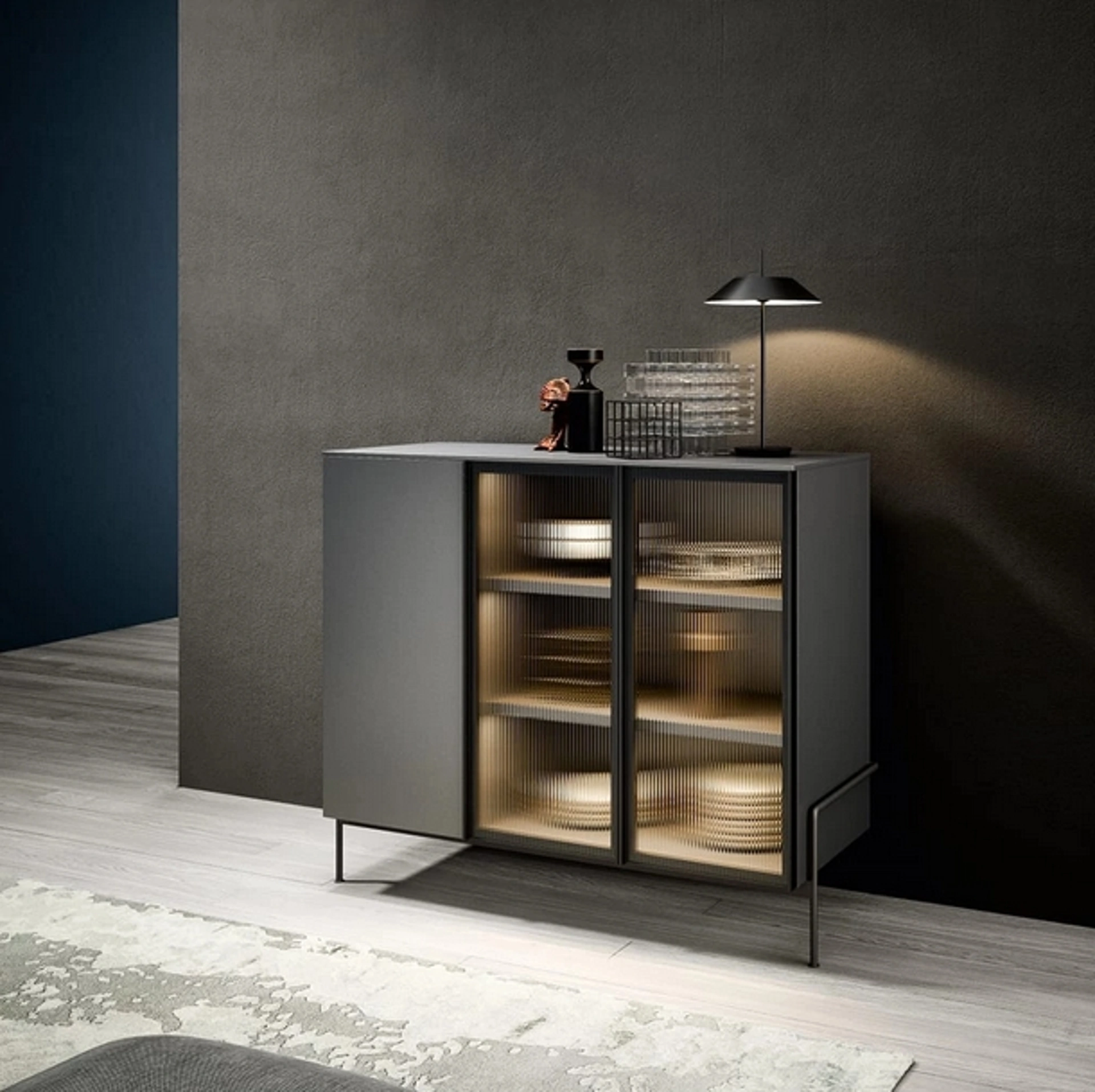 Madia dalle linee essenziali Belt 03 in laccato opaco ideale per impreziosire e ottimizzare stanze moderne