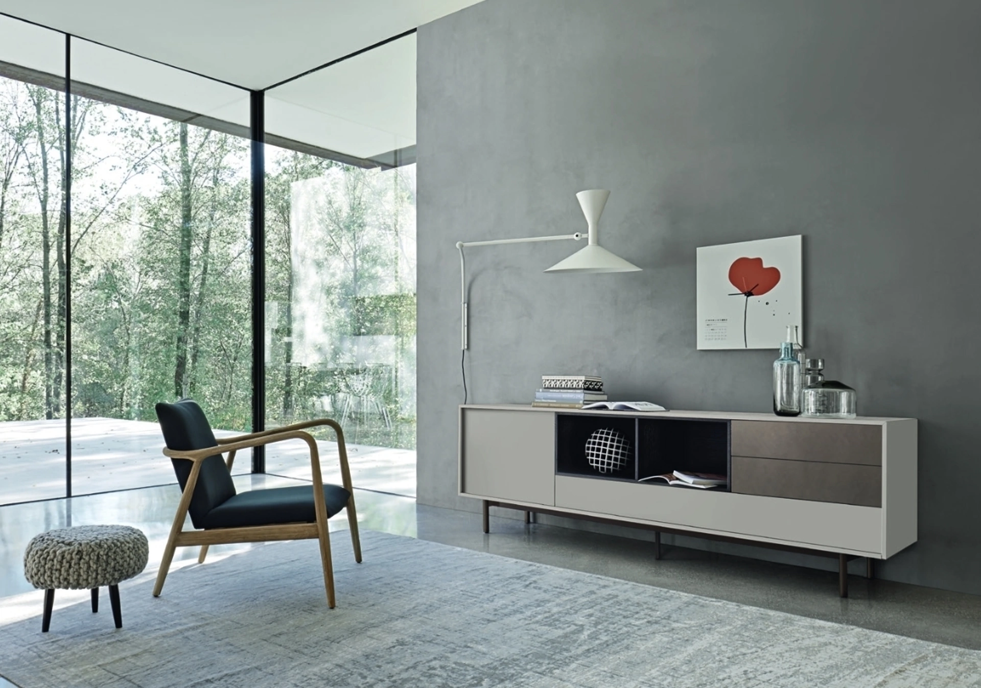 Ti aspettiamo con una ricca gamma di composizioni moderne per il soggiorno come il modello Lampo Open con riquadro 40