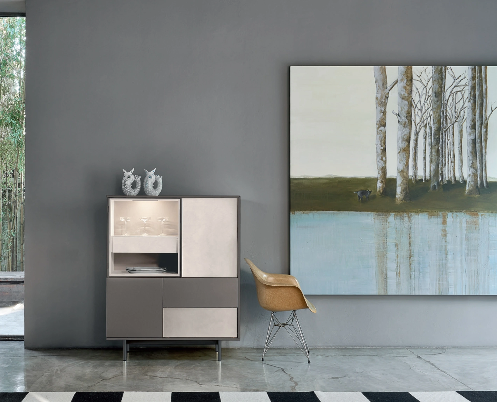Madia dalle linee essenziali Scrigno 316 dx in laccato opaco ideale per impreziosire e ottimizzare stanze moderne