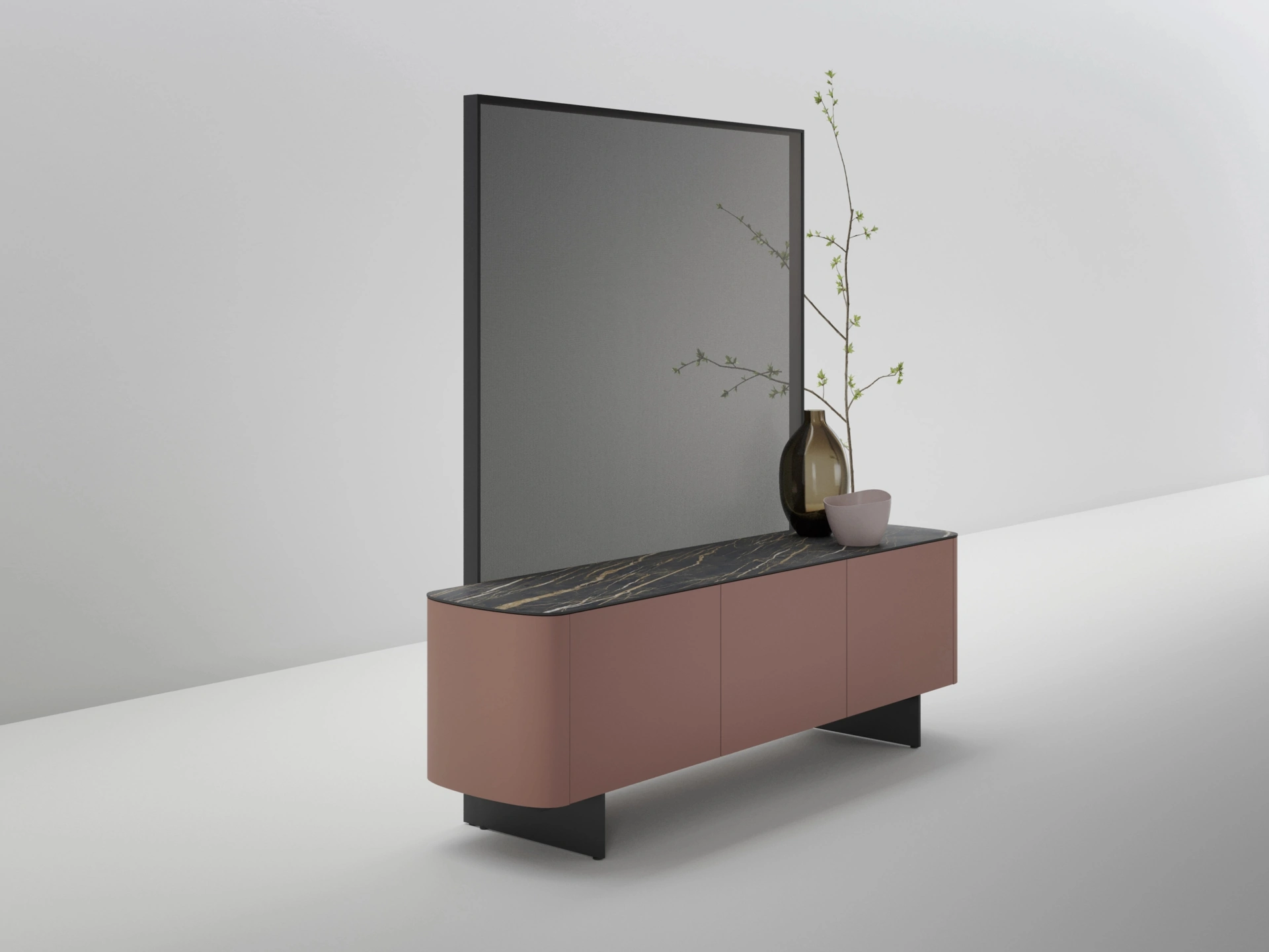 Madia dalle forme semplici Side View in laccato opaco ideale per impreziosire e ottimizzare stanze moderne
