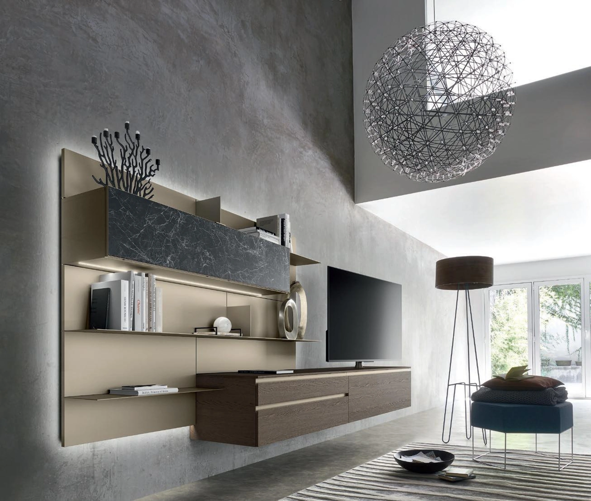 Questo modello Lampo Sospeso in legno è uno tra i mobili soggiorno moderni della firma Sangiacomo