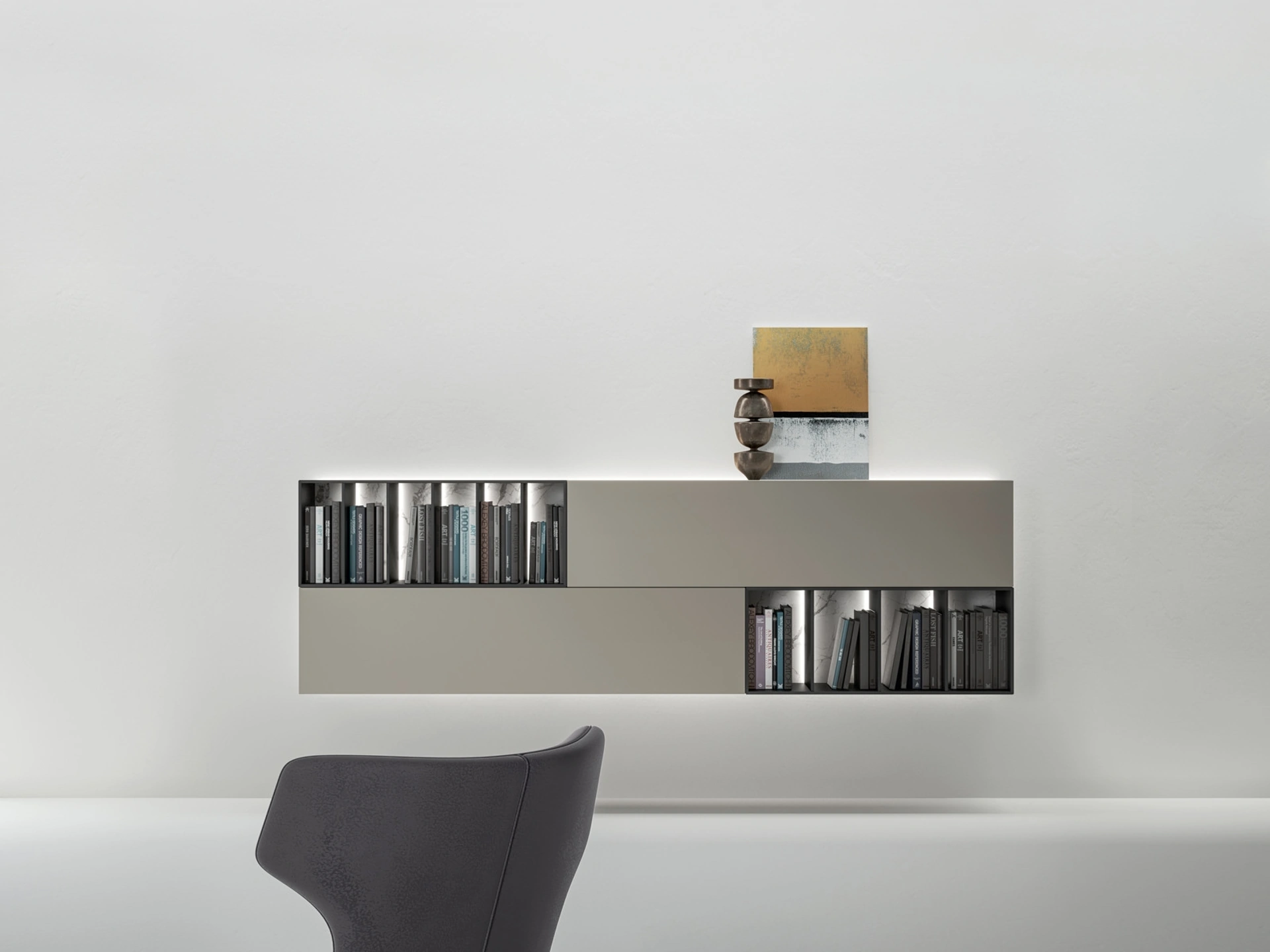 Scopri un ricco catalogo di mobili soggiorno moderni: il modello Wallover laccato mostrato in foto in laccato opaco ti attende