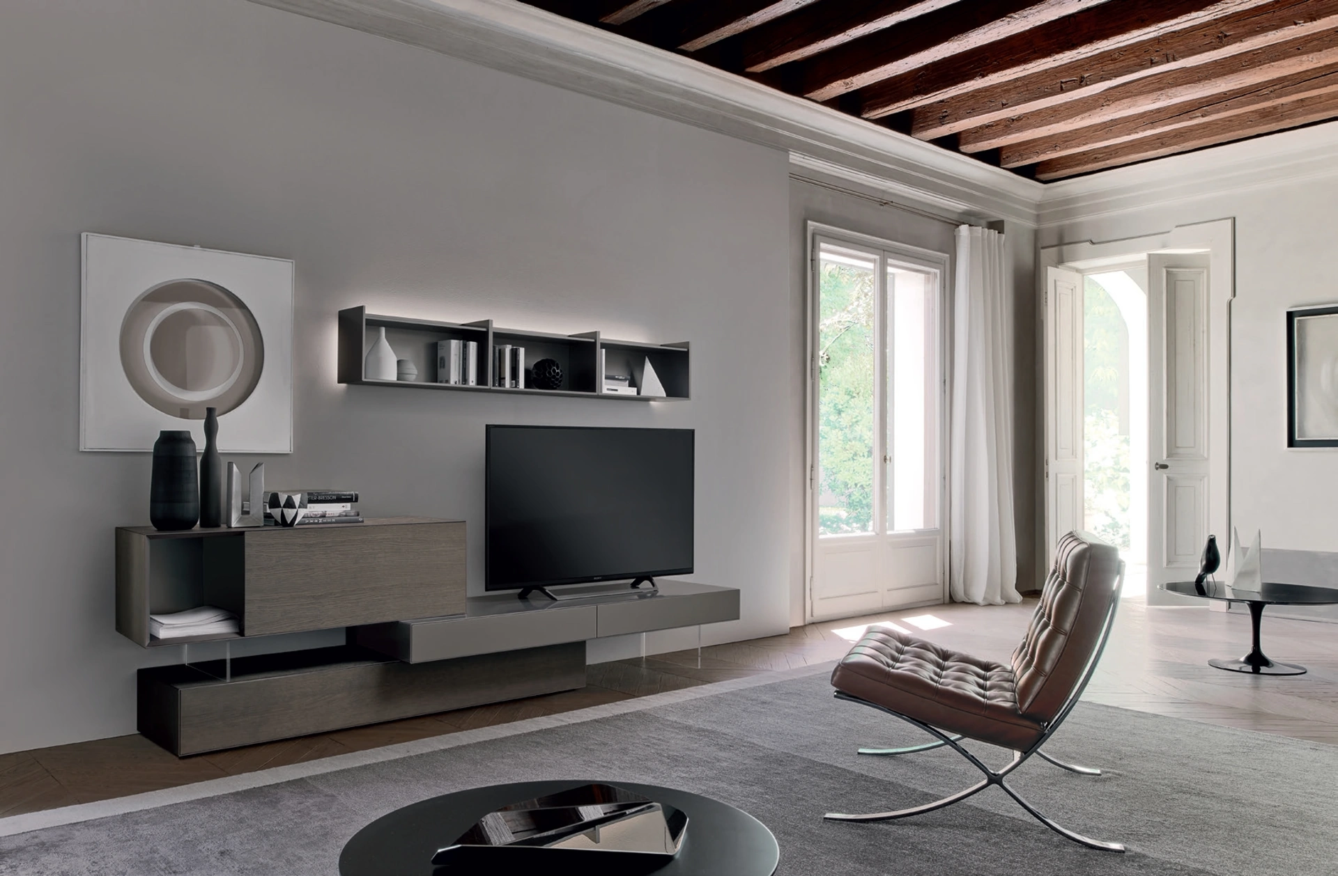 Parete attrezzata dalle linee moderne realizzata in legno: scopri il nostro Arredamento Casa Sangiacomo