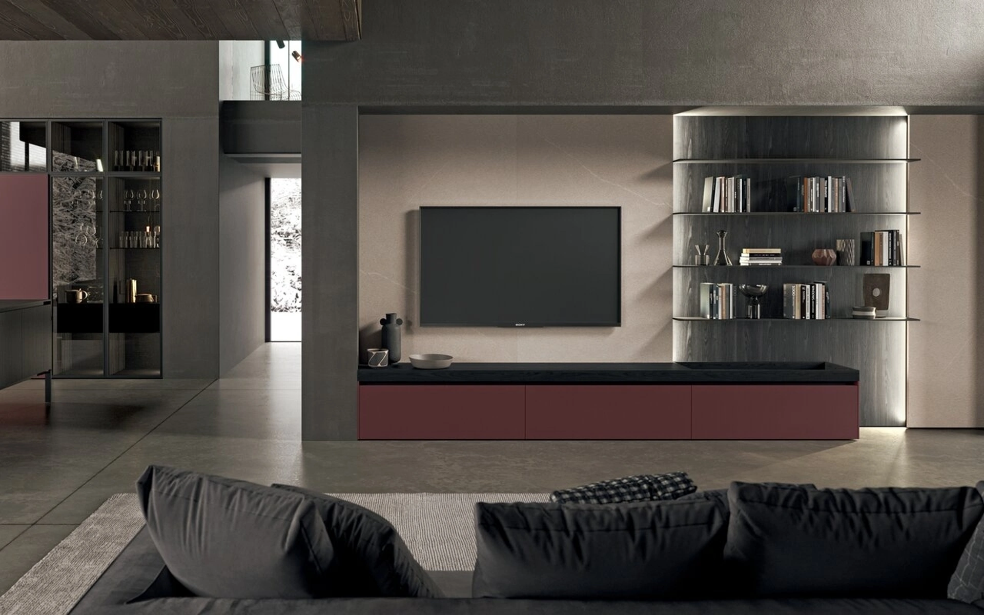 La Parete Attrezzata Regula di Binova nell'immagine ha grandi doti di componibilità e differenti possibilità di caratterizzazione: scopri la parete attrezzata qui presente e contattaci per maggiori informazioni e preventivi. A muro o freestanding per ottimizzare un open space, le più originali composizioni d’arredo in commercio arredano il living ottimizzando lo spazio disponibile. Impreziosisci i tuoi interni con le Pareti Attrezzate moderne di Binova: nel nostro showroom troverai mobili e complementi di design, in materiali di qualità e delle migliori marche. Per soddisfare le eterogenee problematiche abitative di ognuno, marchio mette a disposizione dei suoi clienti una ricca gamma Pareti Attrezzate moderne particolarmente funzionali e contraddistinte da un tocco di stile.