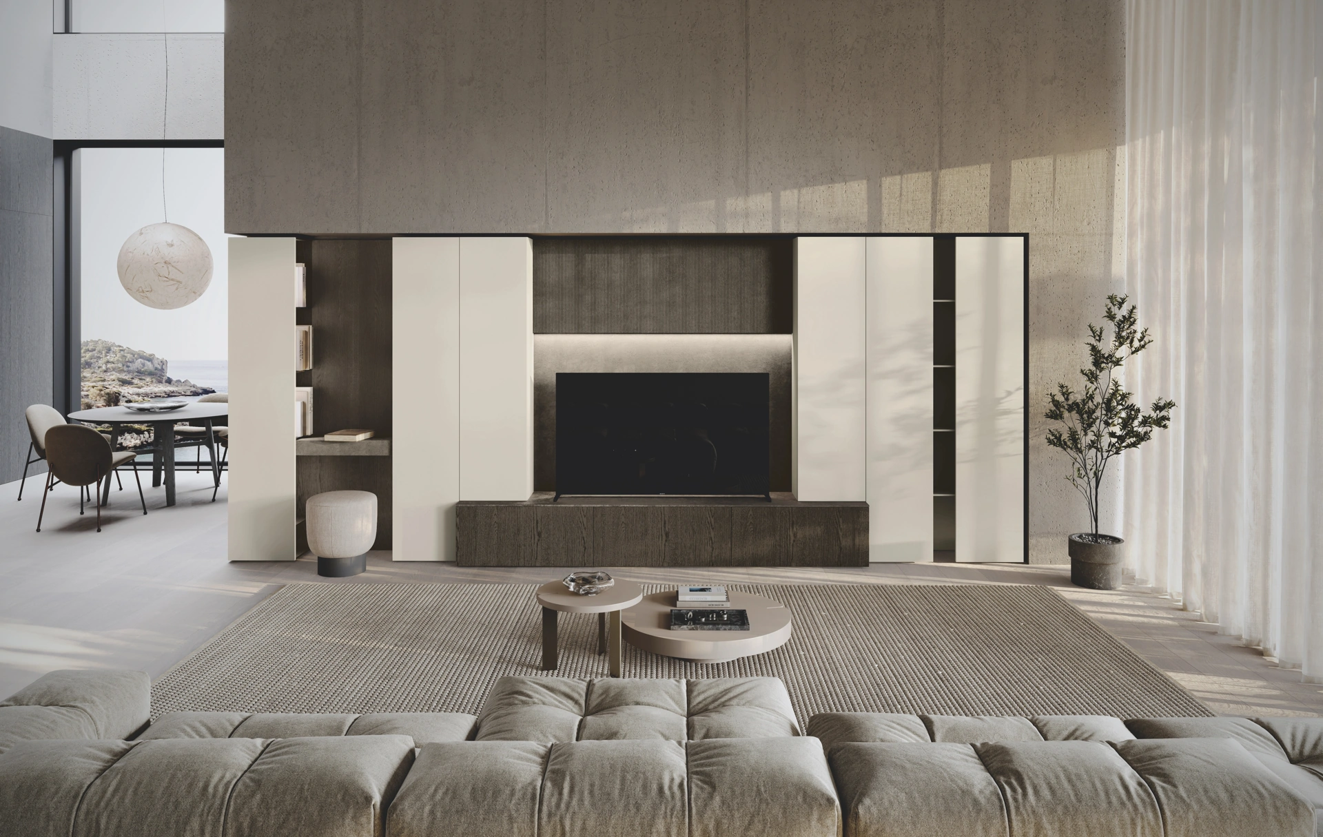 Scopri la Parete Attrezzata Bluna Tech Opaco di Binova per arredare il living in base alle tue personali esigenze