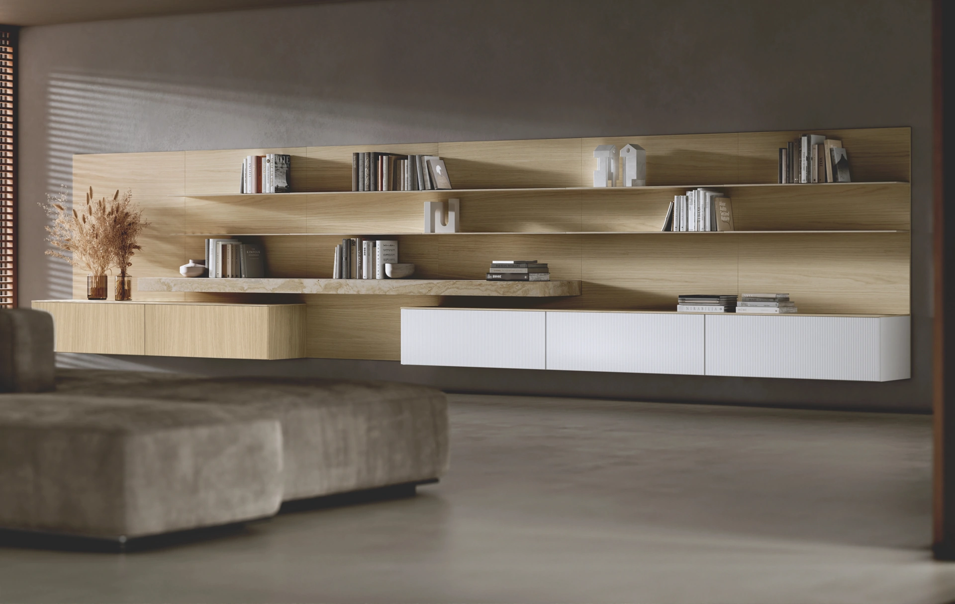 Parete attrezzata dalle linee moderne realizzata in legno di Binova