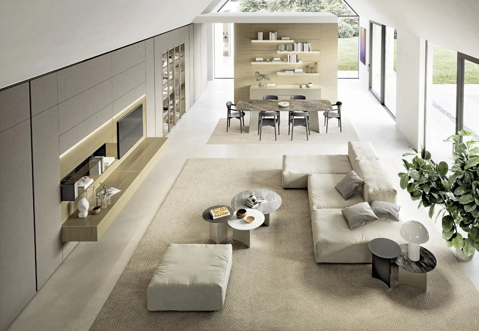 Attraverso un gioco dinamico di accostamenti fra componenti a giorno o vani chiusi, le Pareti Attrezzate moderne arredano il living ottimizzando ogni spazio. Le Pareti Attrezzate hanno acquisito un posto di primo piano nella zona giorno delle nostre case: sono mobili multifunzionali e salvaspazio sempre realizzabili su misura. Per informazioni e preventivi sulla Parete Attrezzata Domino Boiserie 02 di Sangiacomo nella fotografia contattaci! Il modello proposto è realizzato in legno, ma grazie ad una grande varietà di texture, cromie e forme, potrà adattarsi a stili di ogni tipo.