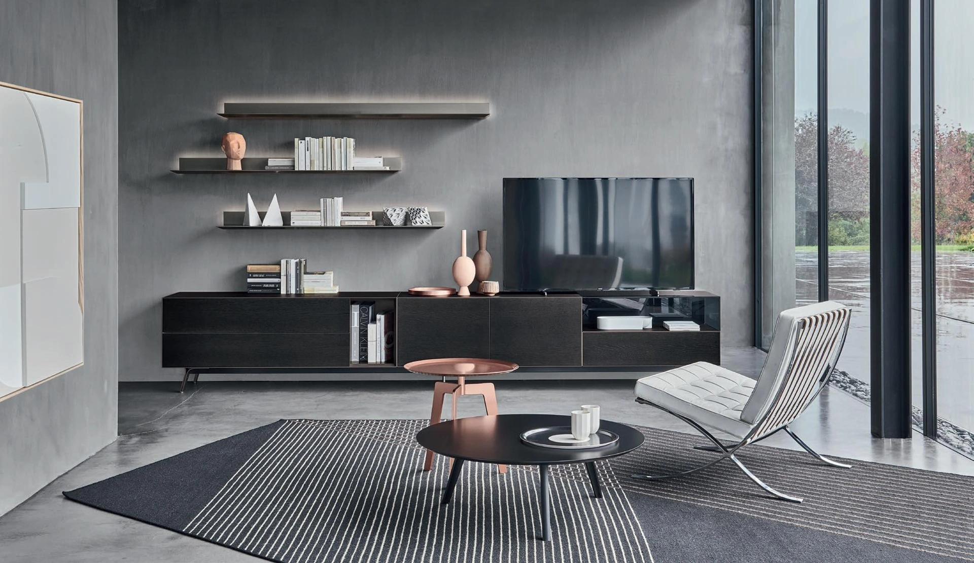 Le Pareti Attrezzate moderne consentono di ricreare diverse ambientazioni nel living, liberando spazio e valorizzando ogni angolo. La Parete Attrezzata Domino Vitrum di Sangiacomo diventa protagonista in stanze di ogni genere grazie ai suoi elementi modulari e alla possibilità di scegliere texture, materiali, tonalità, conformazioni e tanto altro. Scopri la nostra collezione di mobili per il soggiorno della firma Sangiacomo e potrai arredare i tuoi spazi con un design unico e la contenitività di cui necessiti. Siamo rivenditori di Arredamento Casa in vetro dei migliori brand: contattaci e ottieni informazioni! Studiando le più attuali e personali problematiche abitative, selezioniamo solo le più esclusive e interessanti soluzioni d’arredo sul mercato, realizzabili su misura in base alle più personali richieste.