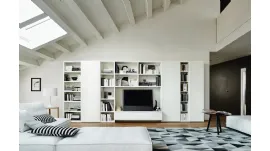 Un po’ librerie, un po’ contenitori ed espositori: le Pareti Attrezzate sono ideali per attrezzare un luogo operativo e pratico. Questo modello costituisce tutta la qualità che il brand garantisce grazie a pluriennale esperienza e grande passione nel settore dell'arredo e del design. Anche in un soggiorno non troppo grande, questo tipo di arredo riesce a organizzare al meglio gli spazi usufruendo al meglio di ogni angolo e assicurando componibilità personalizzabile tipica delle soluzioni moderne. Se cerchi mobili salvaspazio e realizzabili su misura per te, contattaci e scopri di più sull'Arredamento Casa dei migliori produttori. La Parete Attrezzata Horizon di Novamobili nella fotografia, con finitura in laccato opaco, risolve le più particolari problematiche abitative di stile e spazio senza rinunciare alla ricerca estetica.