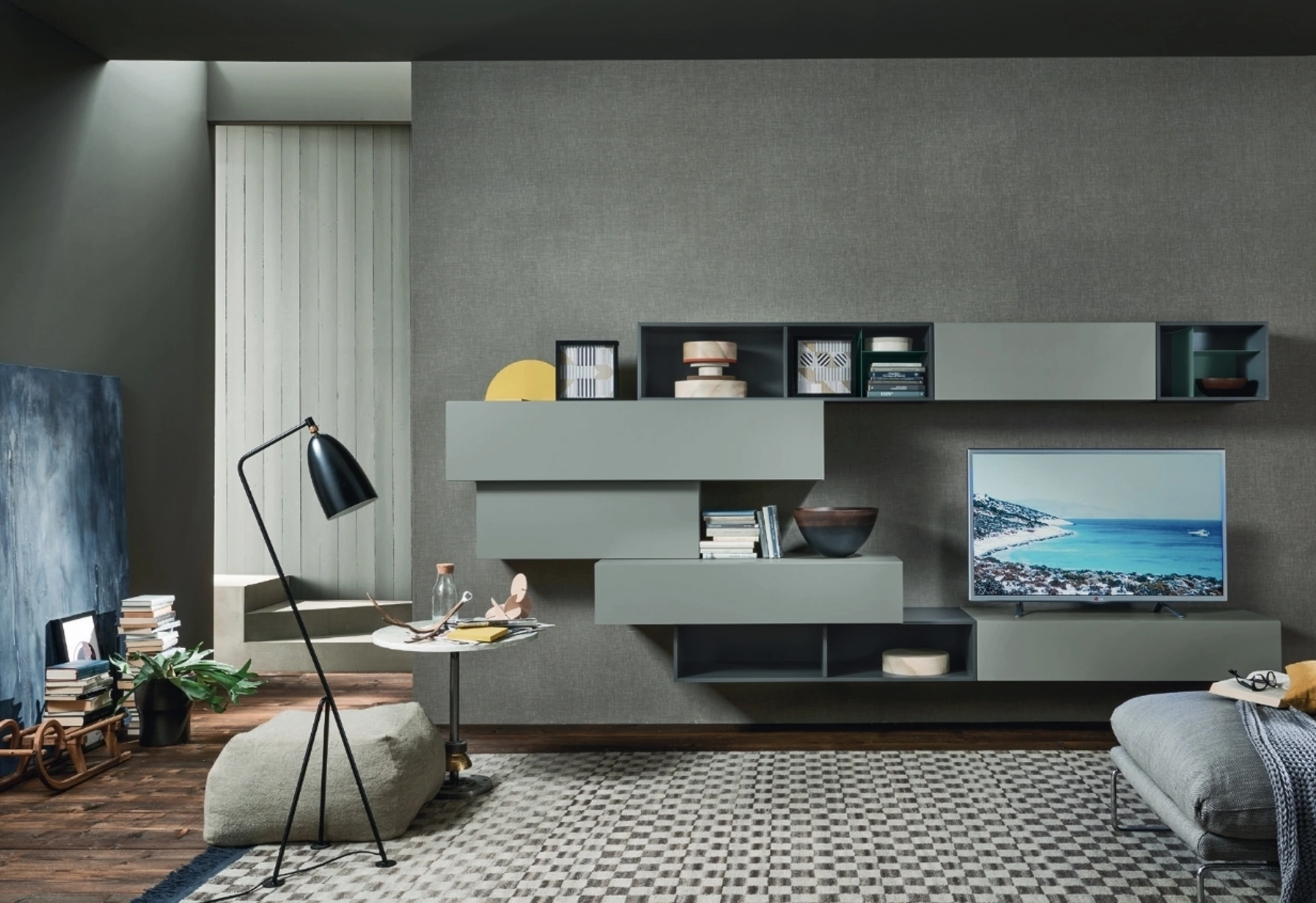 Attraverso un gioco pratico e operativo di incastri, sovrapposizioni, accessori a giorno o vani chiusi, le Pareti Attrezzate moderne arredano il soggiorno usufruendo al meglio di ogni spazio. Negli ultimi anni le Pareti Attrezzate hanno acquisito un posto fondamentale in fatto di Arredamento Casa: sono arredi multifunzionali e salvaspazio sempre realizzabili su misura per te. Per informazioni e preventivi sulla Parete Attrezzata Lampo L6C08 di Sangiacomo nella fotografia contattaci! Il modello visibile in foto è realizzato in laccato opaco ma grazie ad una grande varietà di finiture, tonalità e conformazioni potrà adattarsi a spazi di ogni genere. Questa parete attrezzata è una delle più originali soluzioni del brand e ti permetterà di ammobiliare il living secondo le più personali esigenze abitative.