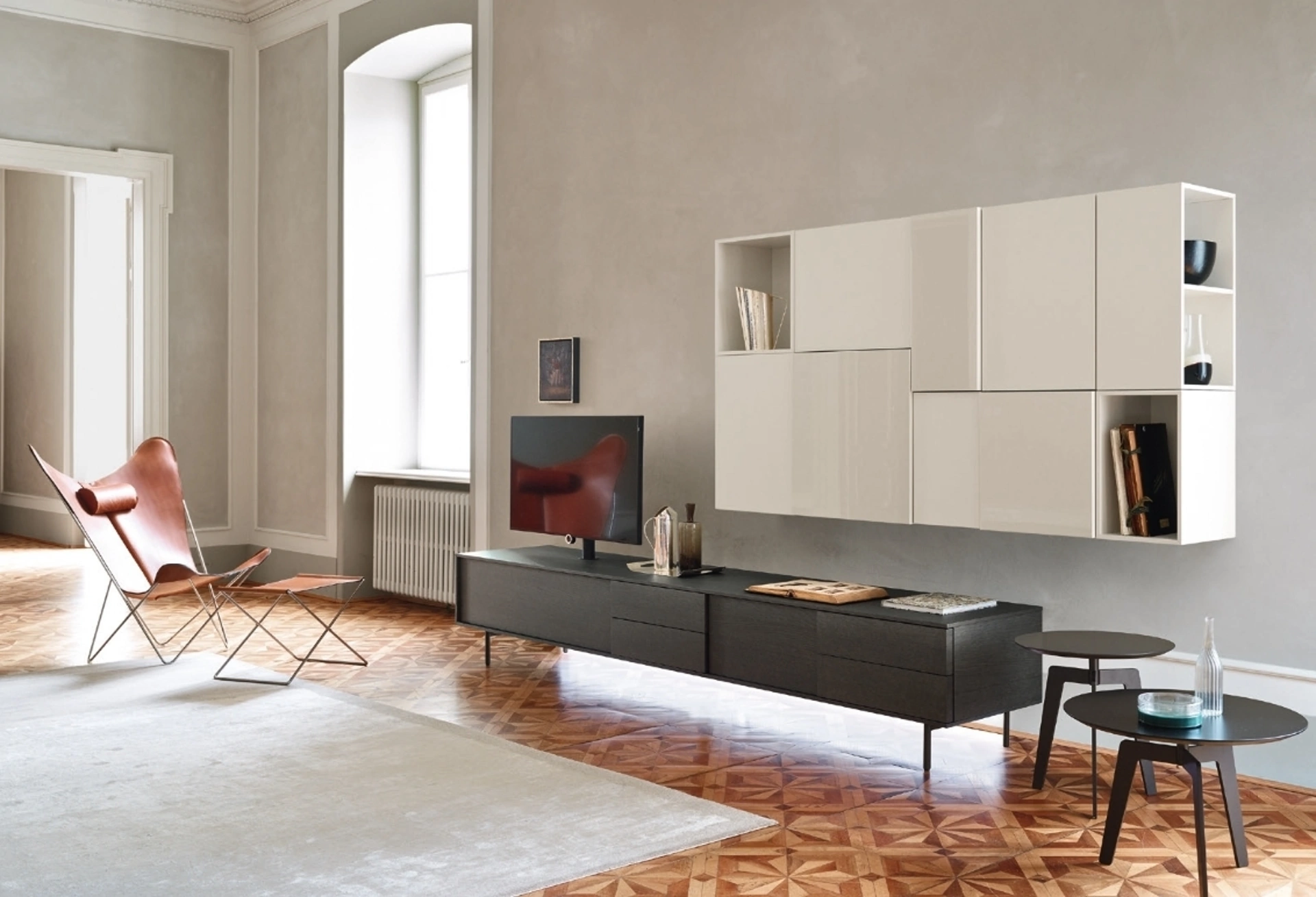 Parete attrezzata dalle linee moderne realizzata in laccato opaco: scopri il nostro Arredamento Casa Sangiacomo