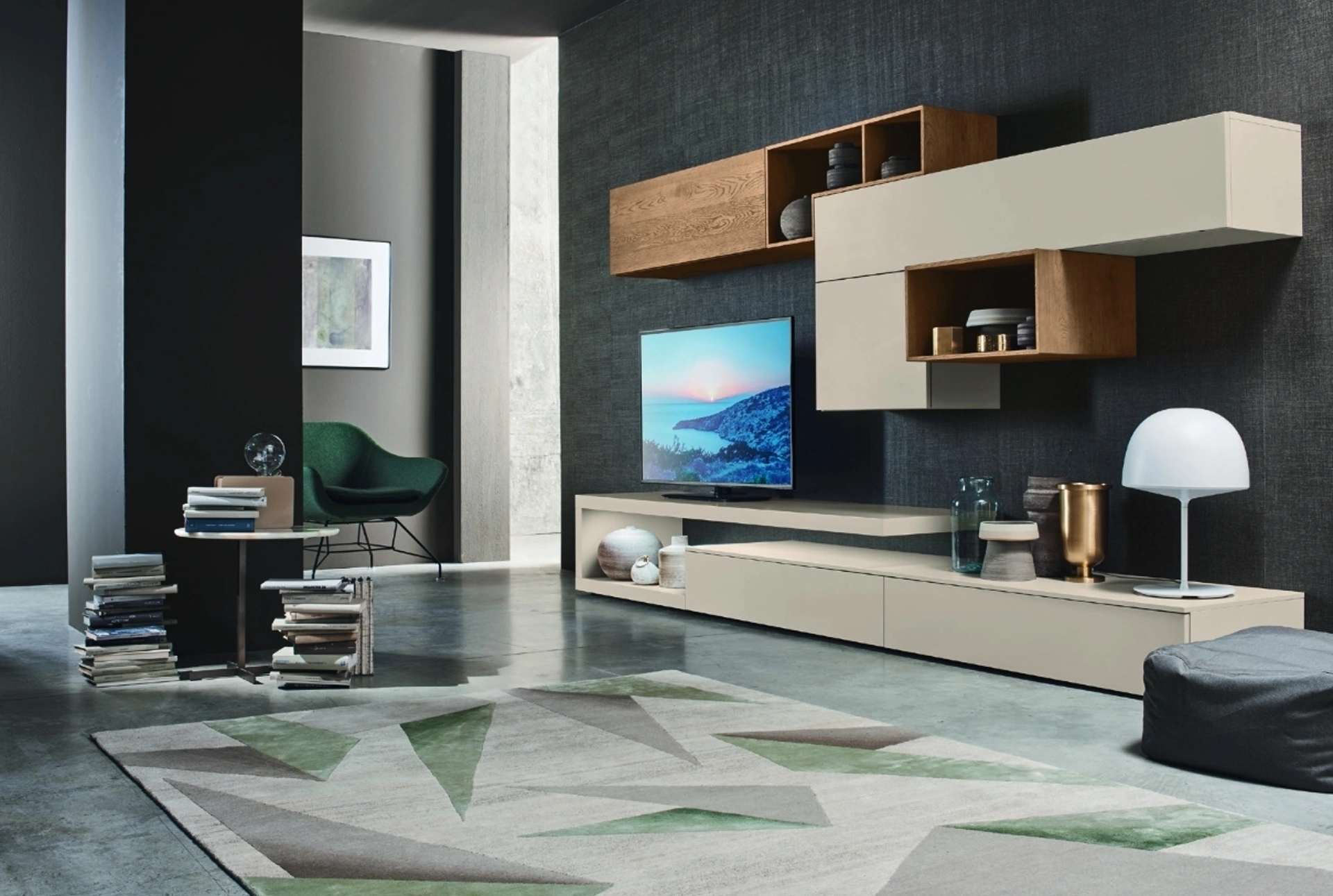 Mobili per il soggiorno e Pareti Attrezzate moderne Sangiacomo: scopri il modello Lampo L6C21 in laccato opaco presente in foto
