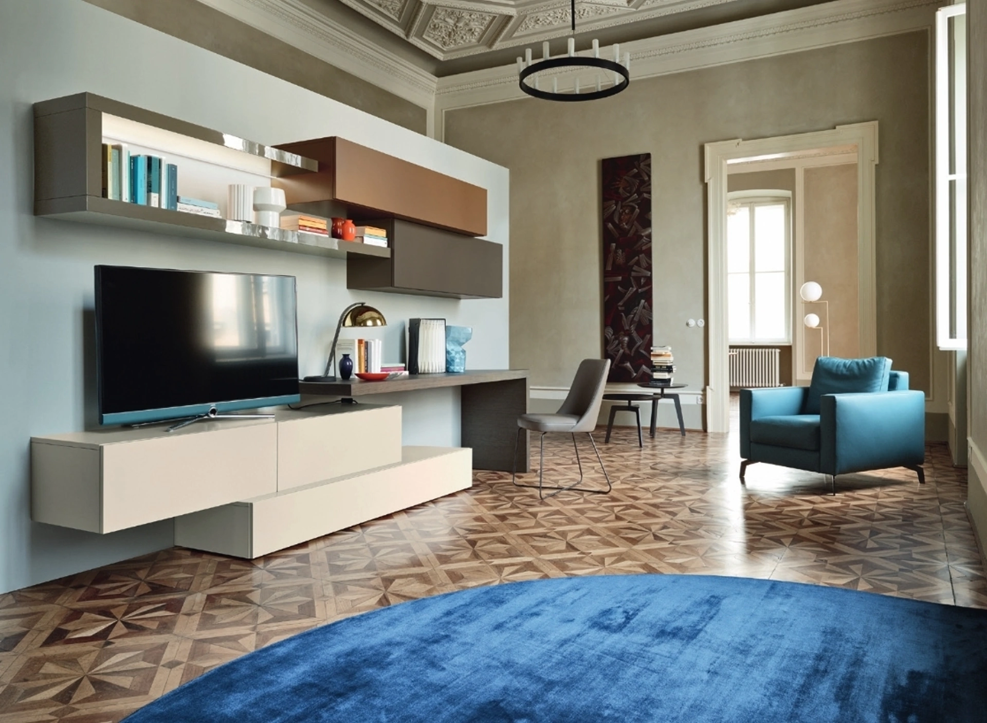 Parete Attrezzata Lampo L6C23 di Sangiacomo: scopri una delle più originali soluzioni in laccato opaco per arredare la zona giorno insieme a noi