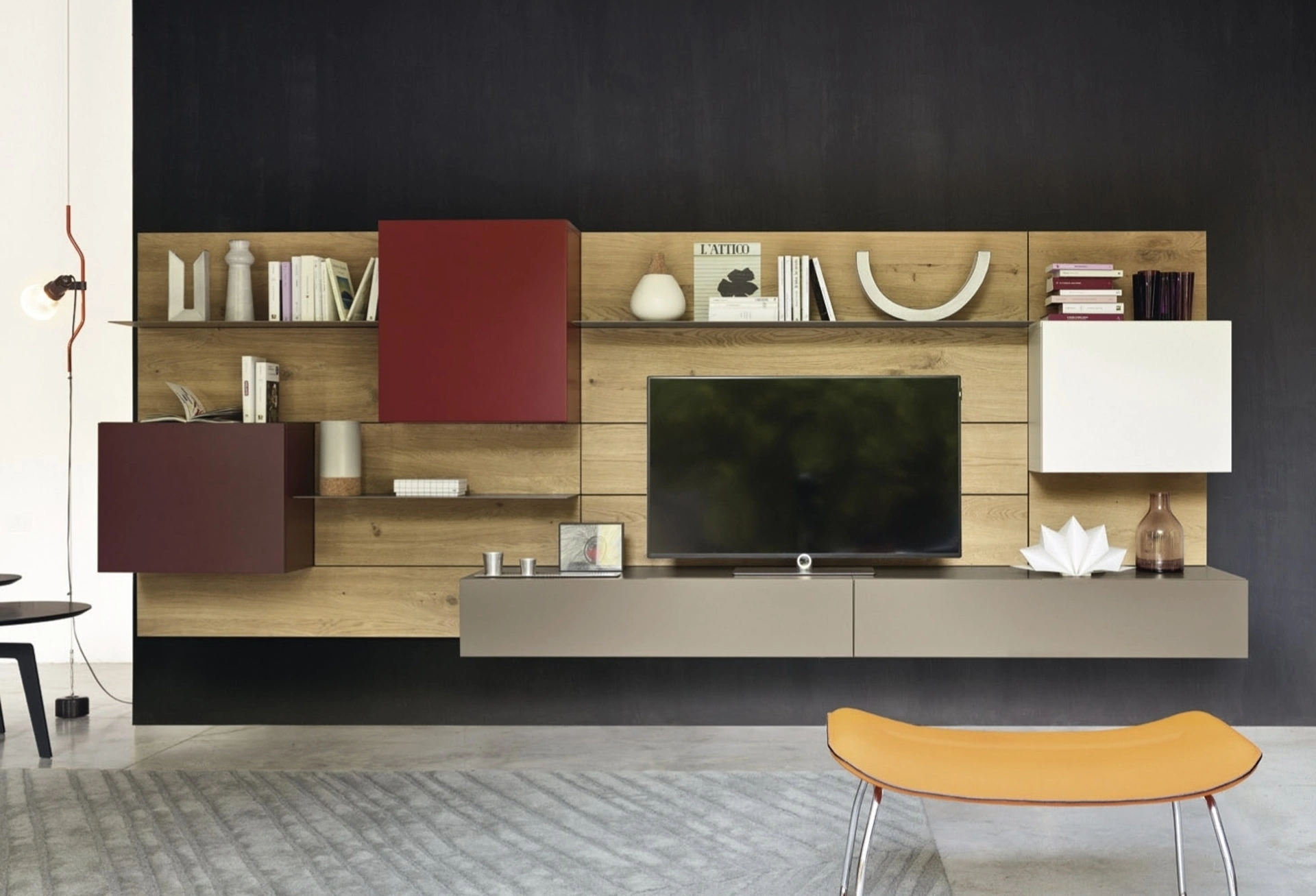 Parete attrezzata dalle linee moderne con finitura in laccato opaco di Sangiacomo