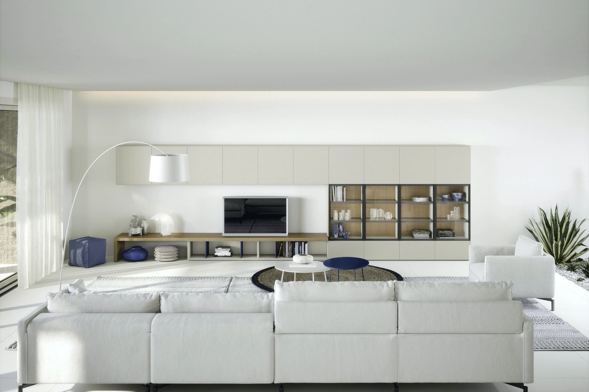 Parete Attrezzata Mensole e piani a muro di Novamobili: scopri una delle più belle soluzioni in laccato opaco per arredare la zona giorno insieme a noi