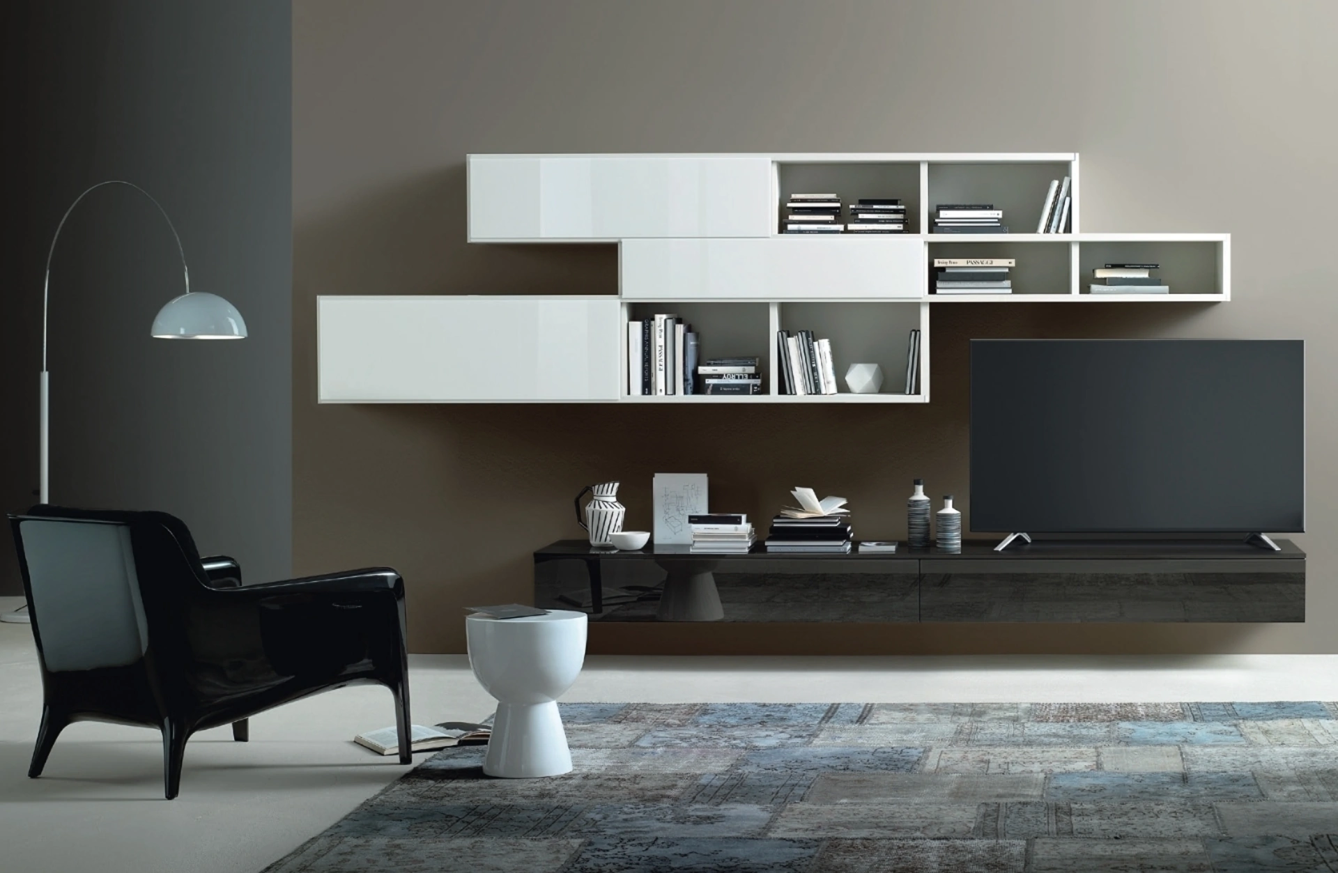 Parete Attrezzata Modo M6C79 di Sangiacomo: scopri una tra le più esclusive soluzioni in laccato opaco per arredare il living insieme a noi
