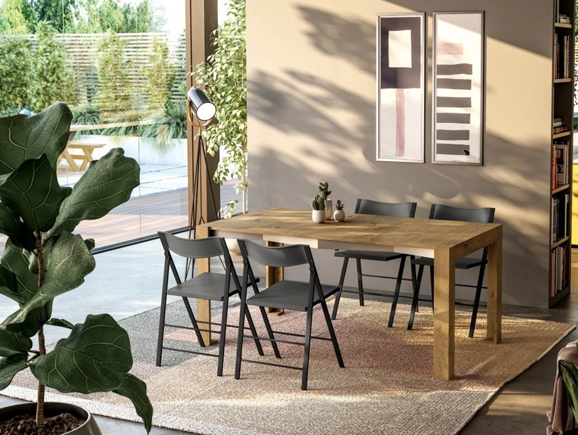 Tavolo Consolle allungabile Slimmy di Easyline: scopri una ricca gamma di mobili ed elementi accessori da cucina per ultimare i tuoi spazi contando su differenti possibilità di personalizzazione. I Tavoli sono arredamenti irrinunciabili in ogni abitazione: completa il tuo concept d'arredo e dai vita alla casa che hai sempre sognato. I modelli consolle in laminato come quello presente in foto si adattano ai più vari contesti abitativi, essendo veramente eclettici e resistenti. I Tavoli sono componenti d'arredo grazie ai quali si possono arricchire il living, la cucina o anche altri ambienti di casa, grazie a materiali durevoli e fantasiosi accostamenti di colore.