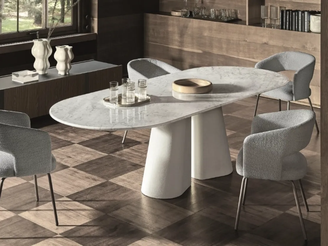 Nel nostro sito dedicato all'Arredamento Casa potrai trovare tutto ciò di cui hai bisogno per il soggiorno o la zona cucina. In showroom ti aspetta un ricco catalogo di Tavoli fissi dei migliori brand, tra cui anche il modello da pranzo presente in foto. Opta per i mobili e complementi in marmo dei migliori brand per ultimare con praticità i tuoi locali senza mai sacrificare il valore estetico. Durante la scelta del tavolo perfetto per te occorre valutare dimensioni, forme, finiture e stile, per organizzare al meglio lo spazio con un'ottima estetica.