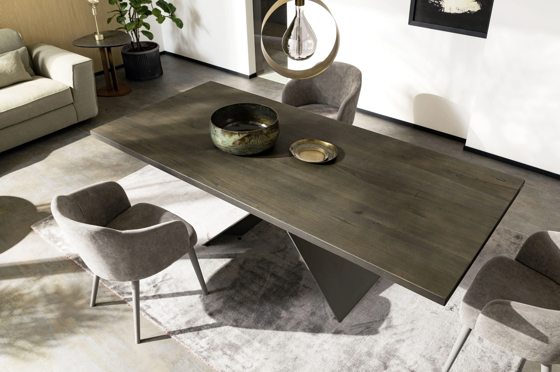 Ideali per dare vita a degli accostamenti unici con sedie e complementi moderni, i Tavoli fissi della marca sono soluzioni tra le più esclusive in commercio, ideali per il living e la zona cucina. Il rinomato marchio Alta Corte, specialista nella realizzazione di mobili in legno, ha scelto per la sua collezione un'ampia gamma di finiture, linee e tonalità. Se sei alla ricerca di un tavolo da pranzo di alto contenuto estetico, contattaci e ricevi info e preventivi sul modello visibile in foto. Un modello come quello nella fotografia, in abbinamento alle giuste sedie, saprà impreziosire lo stile delle stanze domestiche dedicate per eccellenza alla convivialità.