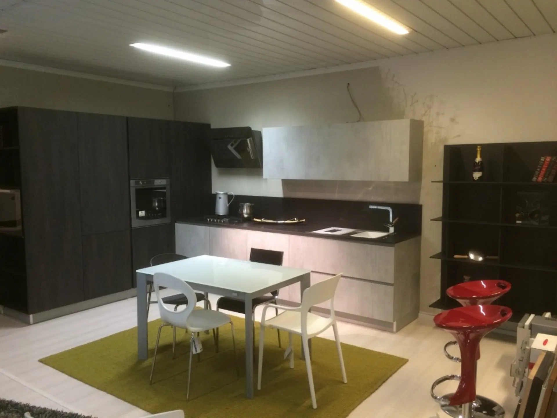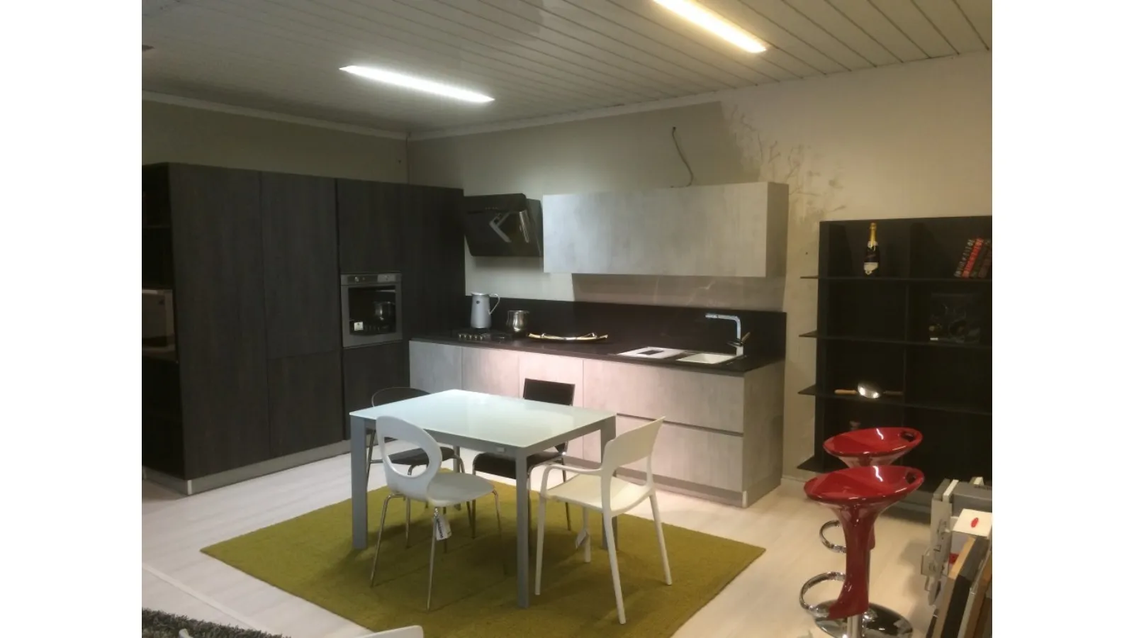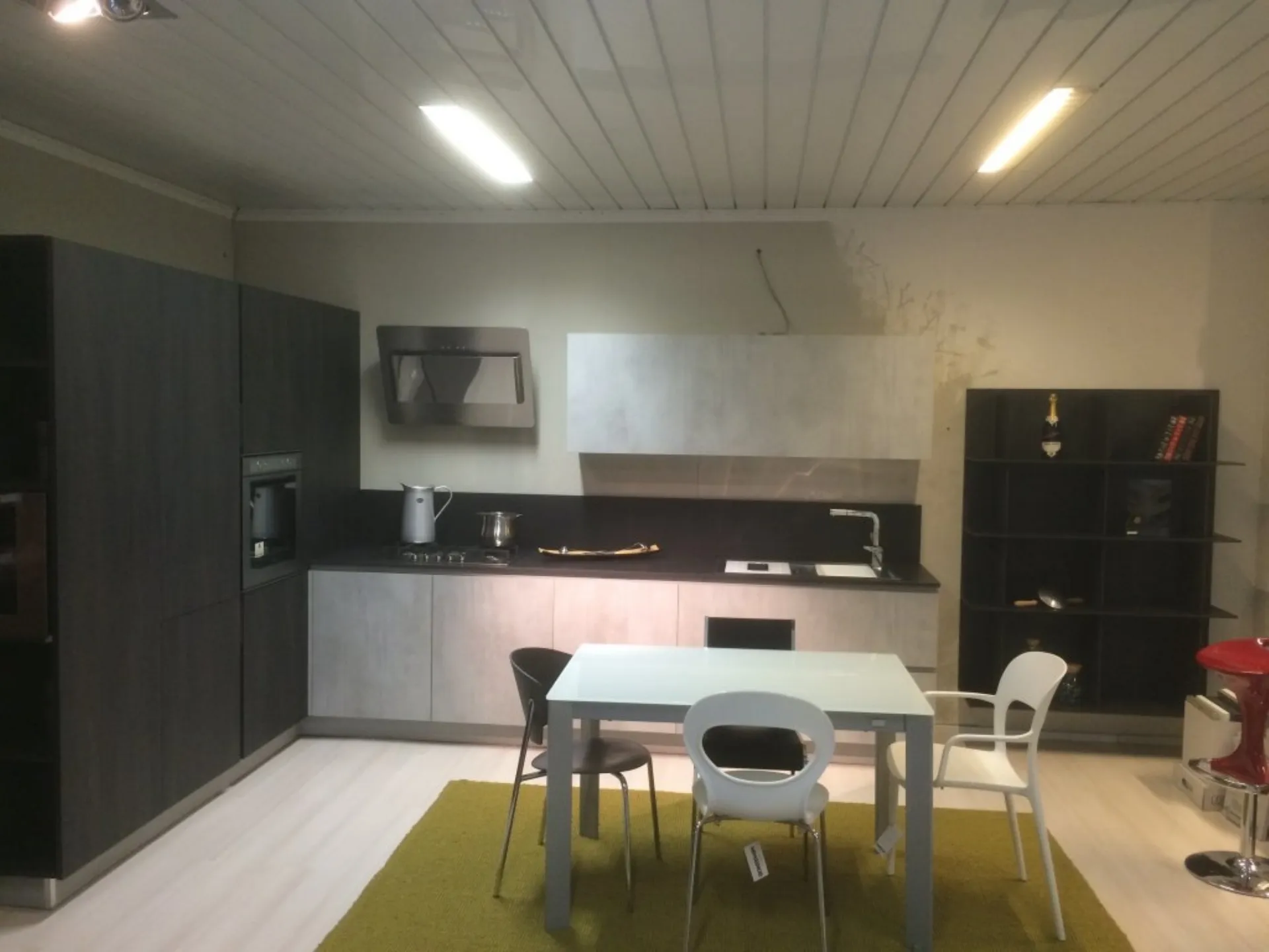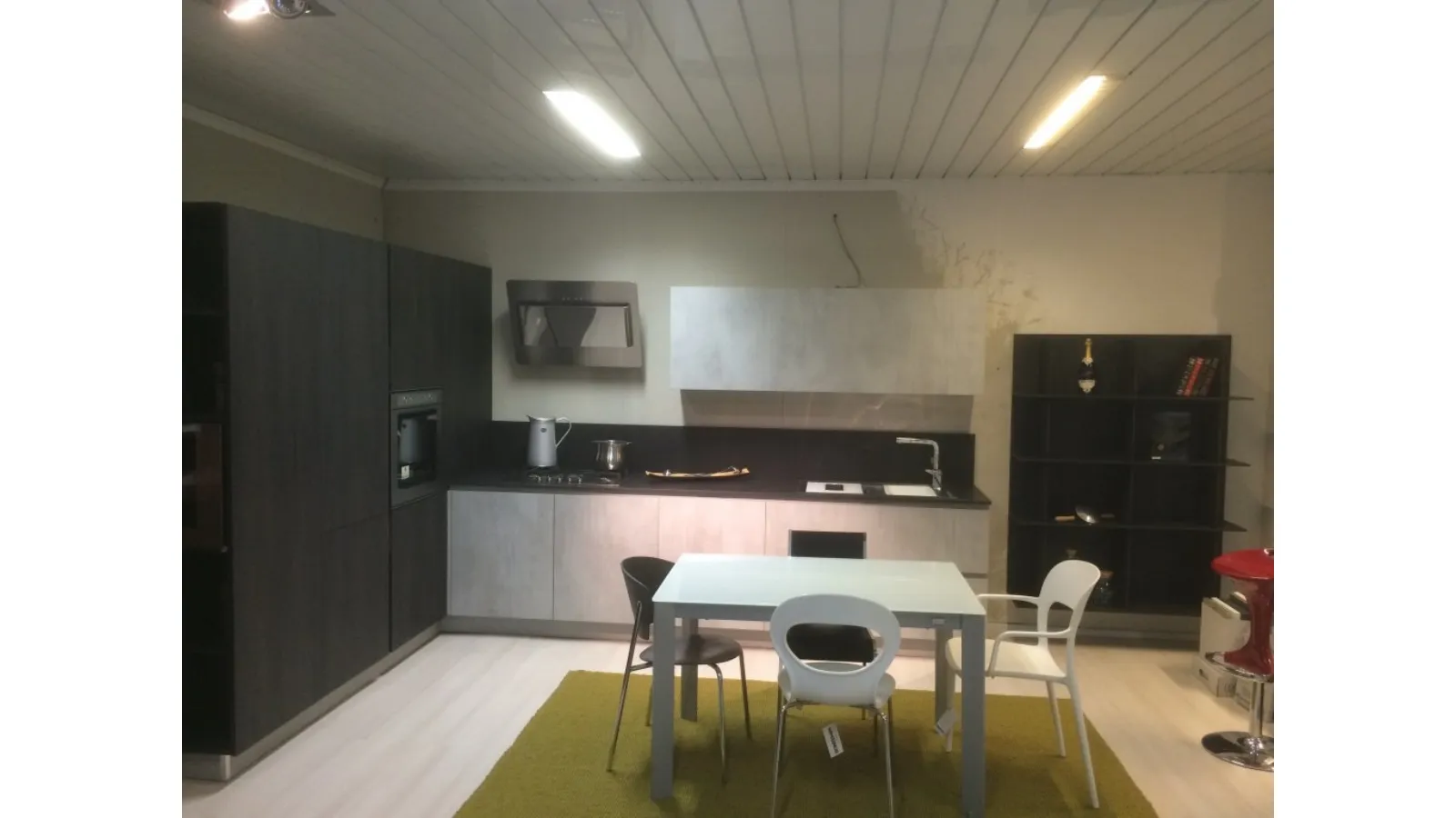Cucina moderna bicolore in frassinato con maniglie a scomparsa